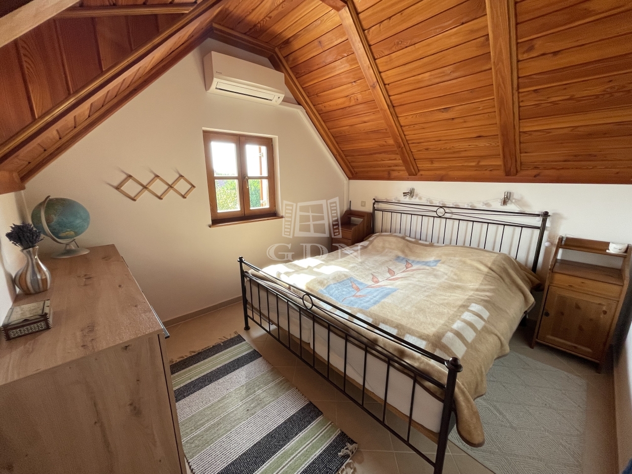 Emelet: 2 hálószoba (20 és 10,2 m²) split klímákkal, sarokkádas fürdő (4,1 m²), külön WC (1,6 m²), tároló