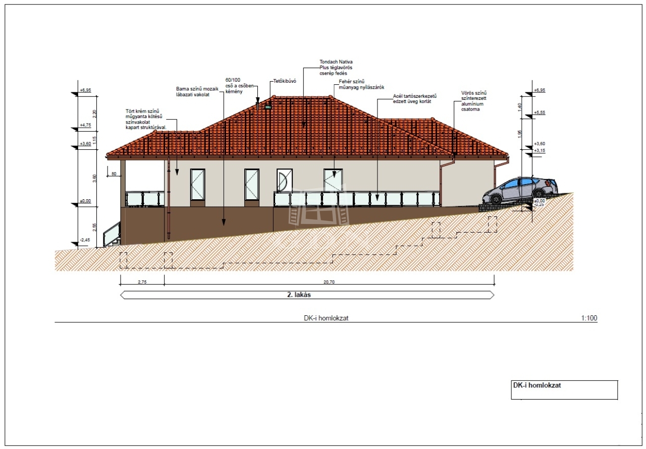 A 98,8 m²-es lakótérben 3 szoba + nappali biztosít kényelmes életteret a jövőbeli lakóknak. A házhoz tartozik egy ~508 m²-es saját kert, ami tökéletes helyszín családi és baráti összejövetelekhez. A 11,83 m²-es teraszról (alatta 9,01 m²-es tároló) gyönyörű kilátás nyílik a környező tájra.