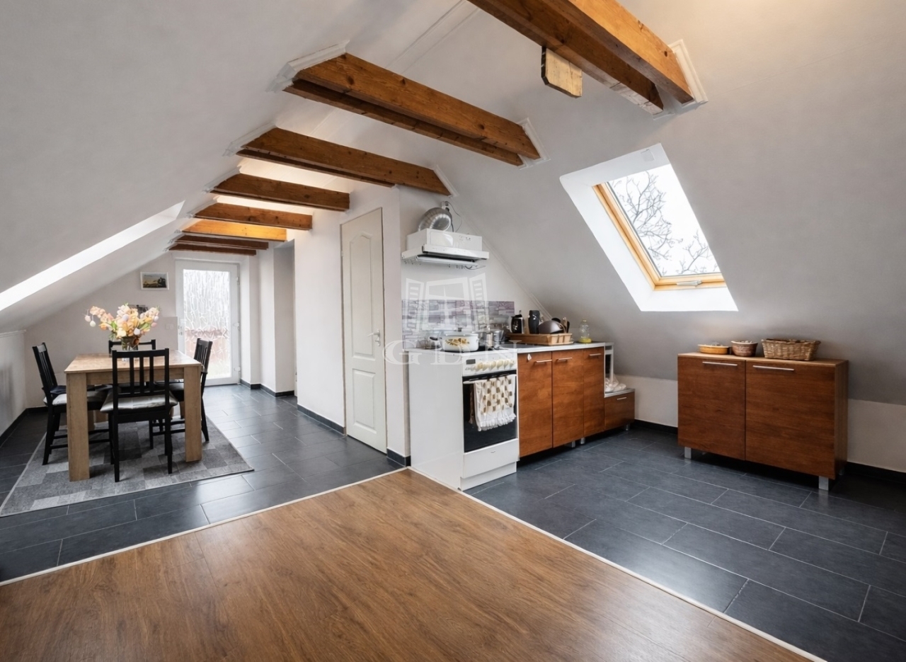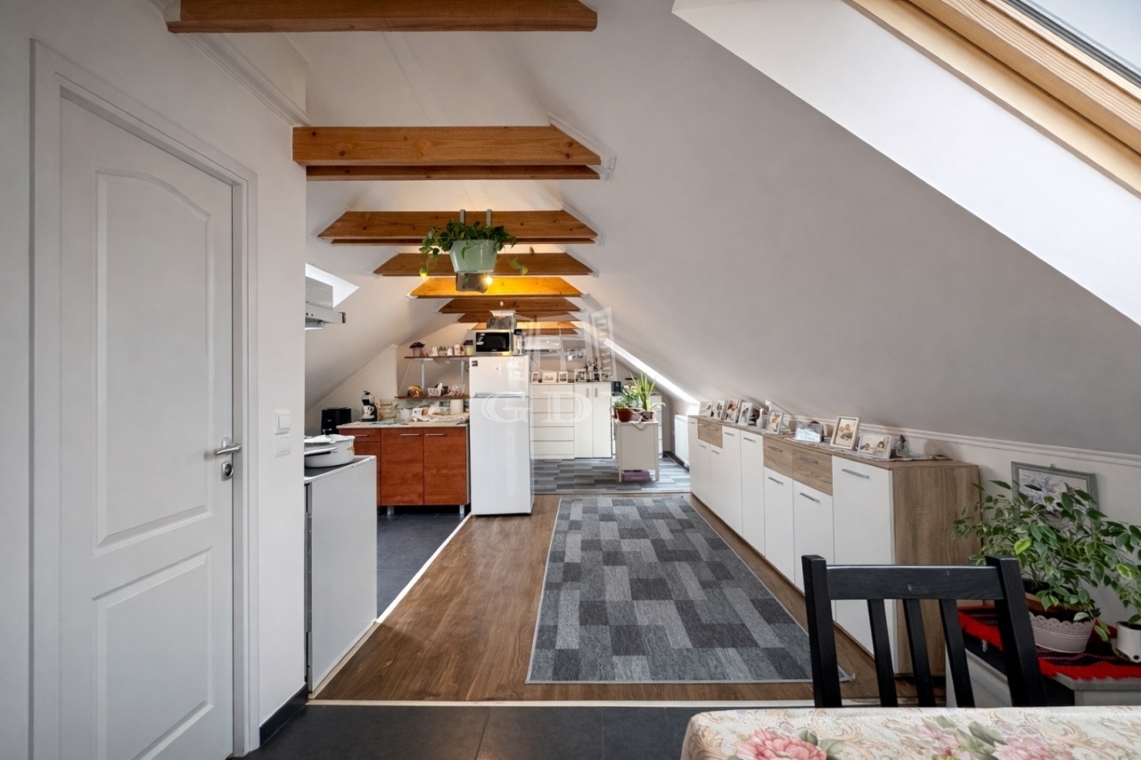 A tetőtéri rész (~50m2) külön bejárattal rendelkezik. Ezen a szinten egy fürdőszoba, WC és egy egy-légterű amerikai konyha nappali található, melyben egy elszeparált haló rész is helyet kapott.