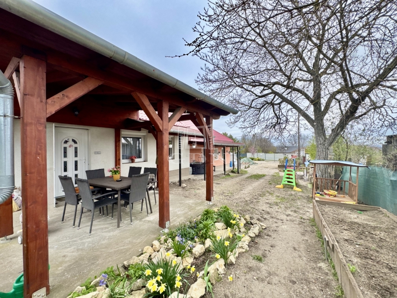 A telek 1375m2, teljesen körbekerített. Található rajta egy 27m2-es melléképület is.