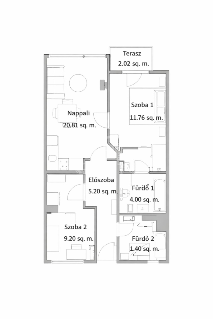 57 m2Alapterület 3 Szoba