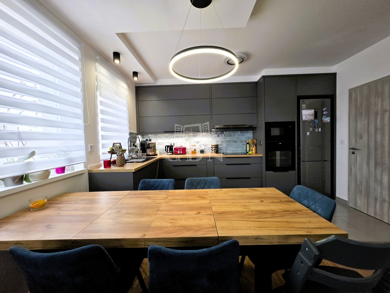 - A tágas nappali–amerikai konyhás tér a lakás valódi központja, amely gépesített konyhával várja új tulajdonosát – tökéletes helyszín a mindennapokra és a vendéglátásra egyaránt.