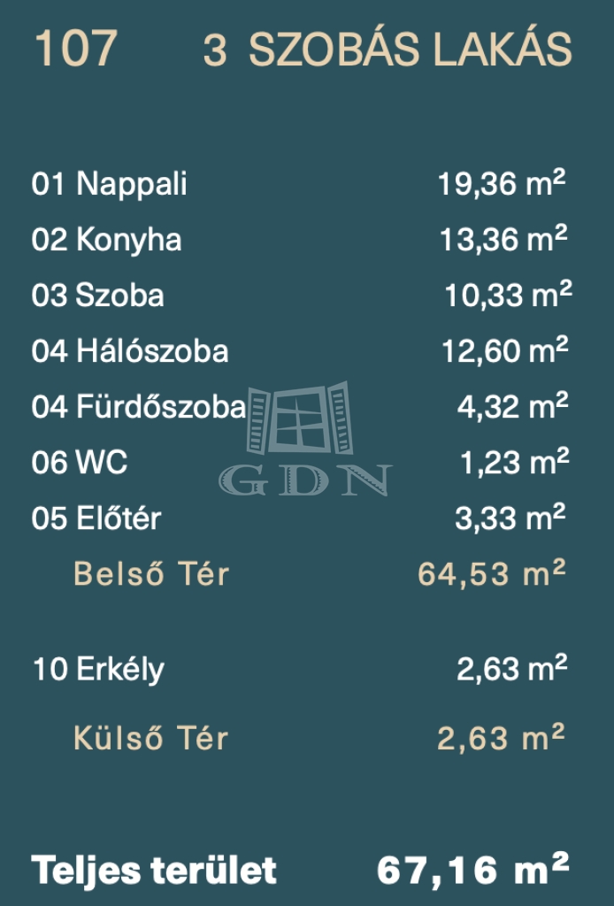 65 m2Alapterület 2 + 1 Szoba