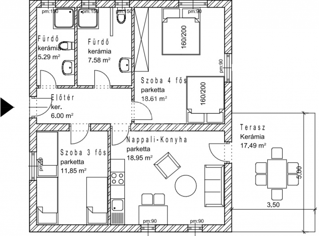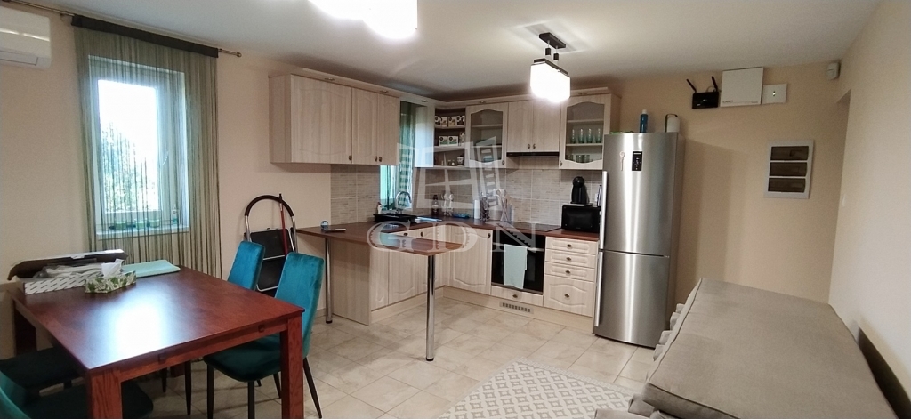 2 szoba, 2 fürdő, valamint amerikai konyhás nappali biztosítja a kényelmet, valamint Nord típusú hűtő-fűtő klíma gondoskodik az épület melegéről, hűtéséről. A ház műanyag, thermó nyílászárókkal rendelkezik, melyek redőnnyel és rovarhálóval vannak ellátva, valamint 15 cm-es szigetelést kapott a felújításkor.