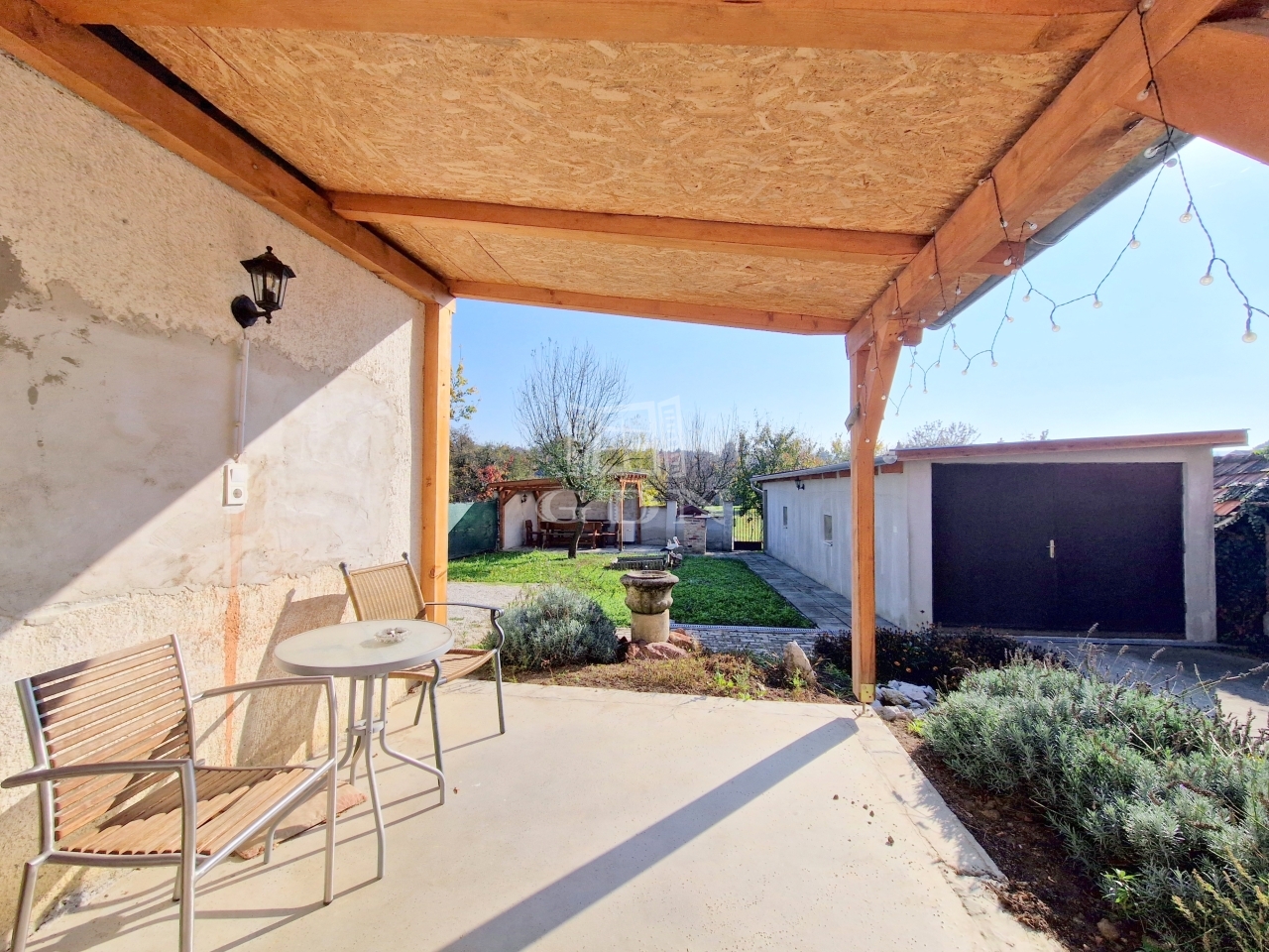 pihenésre szolgáló kiülőt a hozzá tartozó grillel, rendelkezésünkre áll egy fúrt kút, továbbá szilva, barack, meggy és alma hasznait élvezhetjük.