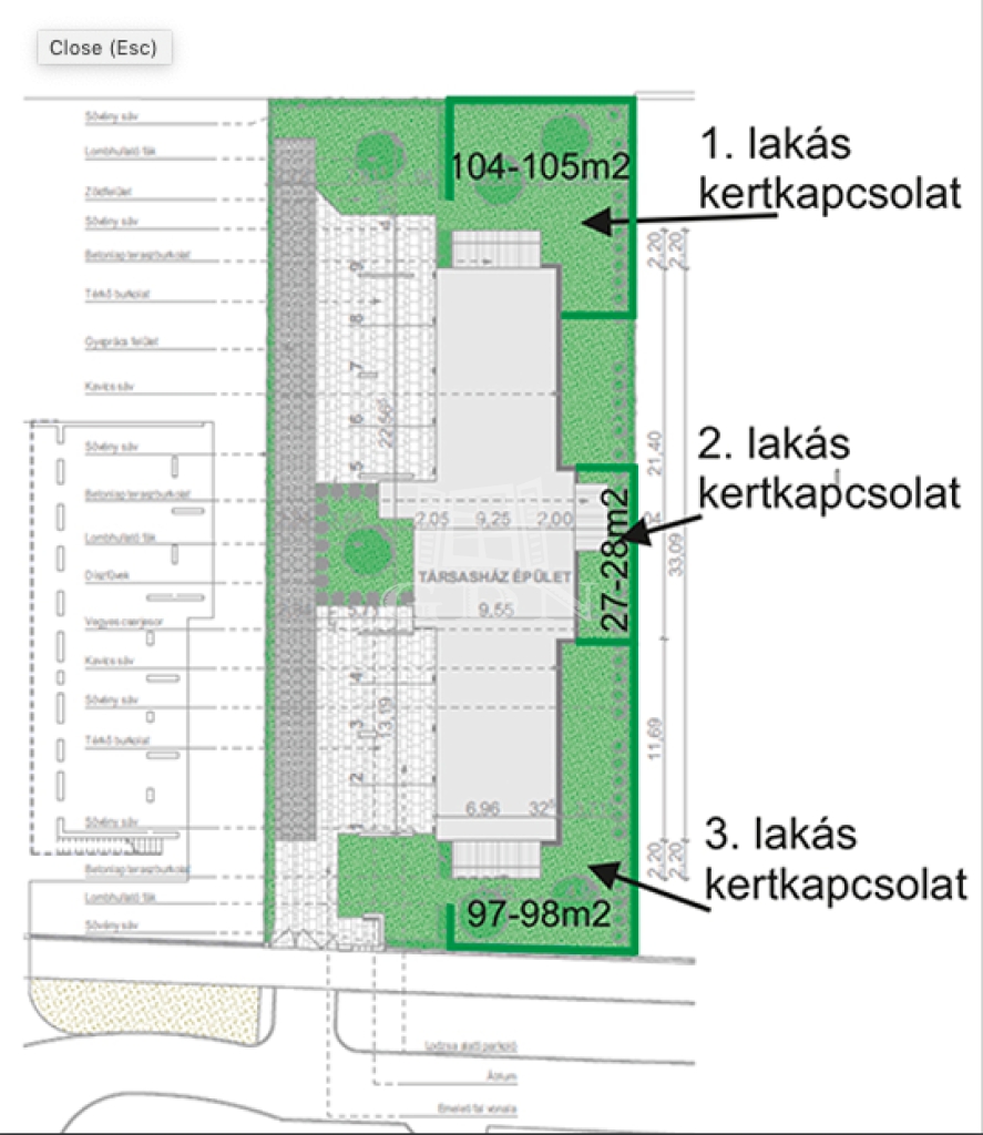 Az udvar parkosított.