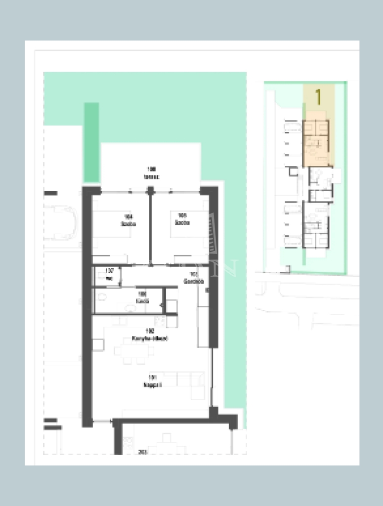 Földszint 1-es lakás beosztása és vételára: