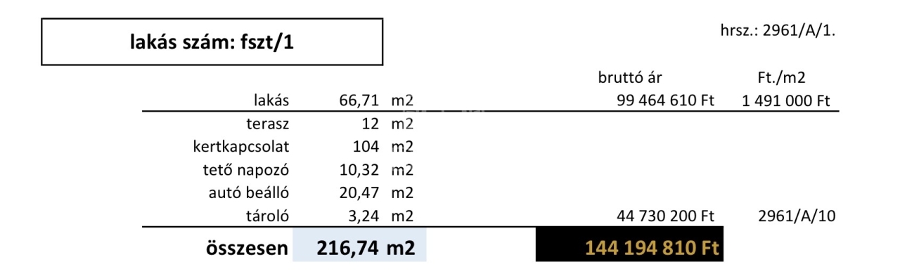 Lakás nettó alapterülete: 66,71 nm