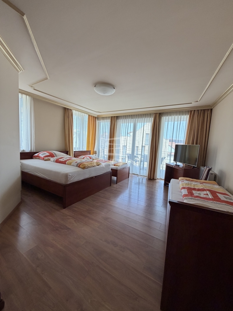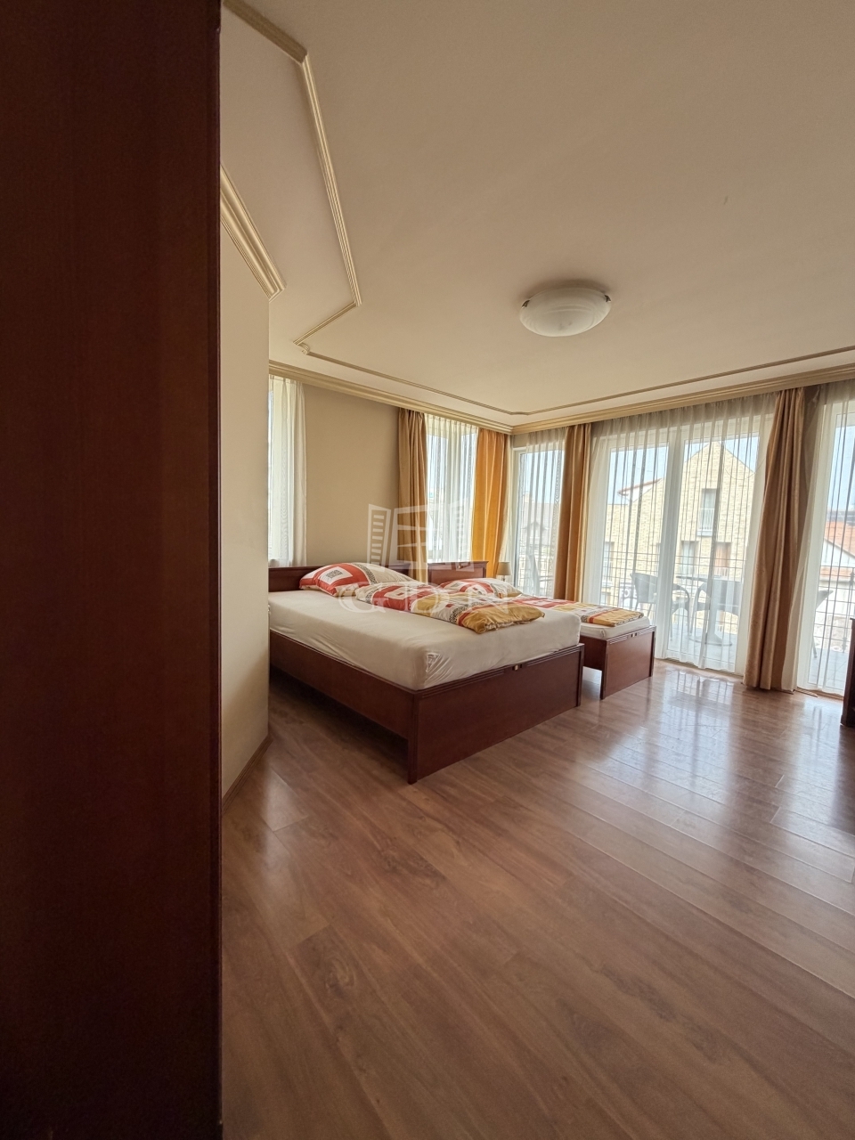 A 2008-ban épült, többcélú épületben található lakás praktikus és sokoldalú elrendezésű: három külön bejáratú szobával rendelkezik, amelyek mindegyike saját fürdőszobával, WC-vel és klímaberendezéssel felszerelt. Ez a kialakítás rendkívül ritka, és számos felhasználási lehetőséget kínál.
