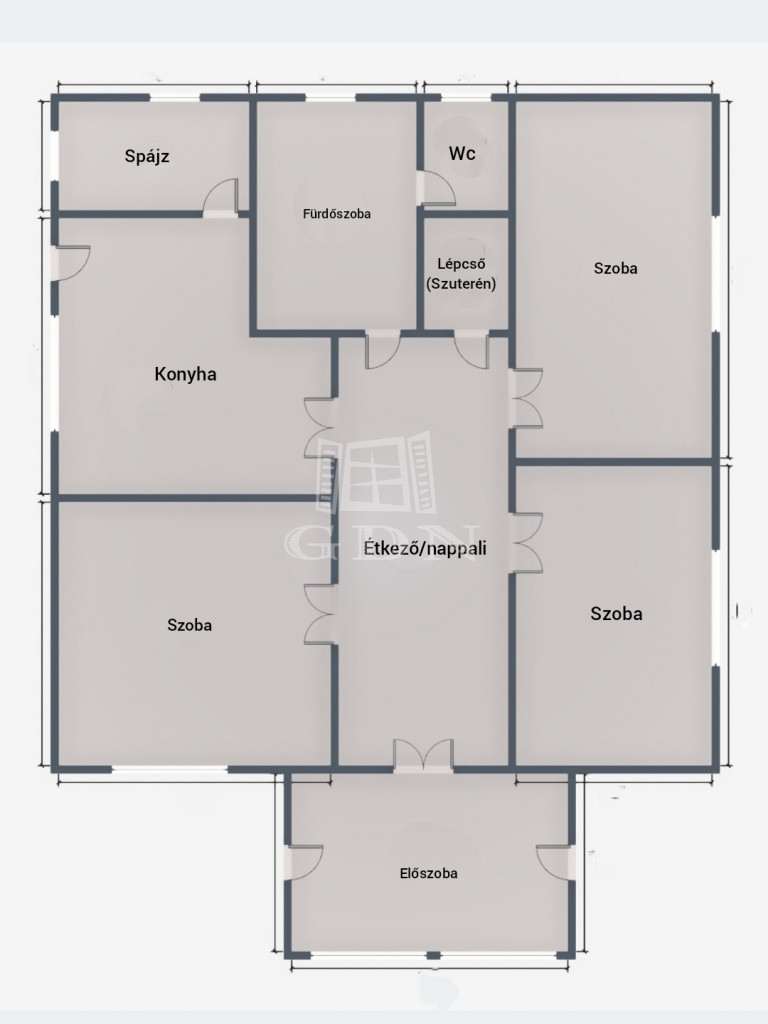 A földszinti lakótér három tágas szobából, egy világos, nagy méretű konyhából, kamrából, több mint 15 m²-es étkezőből, fürdőszobából, külön WC-ből, valamint előszobából áll. A helyiségek elosztása átgondolt és praktikus, a ház kiváló fényviszonyokkal rendelkezik, minden helyiség tágas és világos.