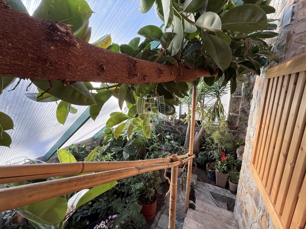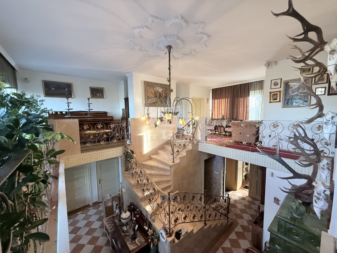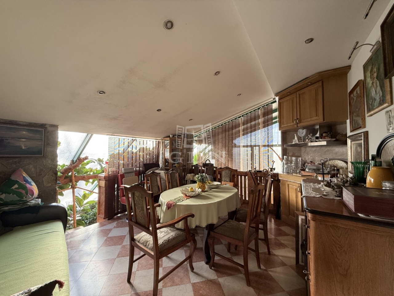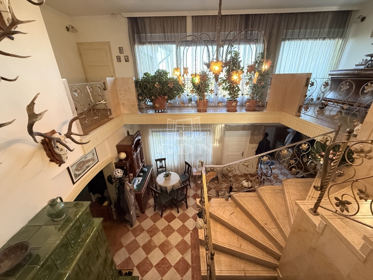 A mediterrán stílusú épületnek 2 bejárata van nagy terasszal. A felső teraszról pompás kilátással a kertre.