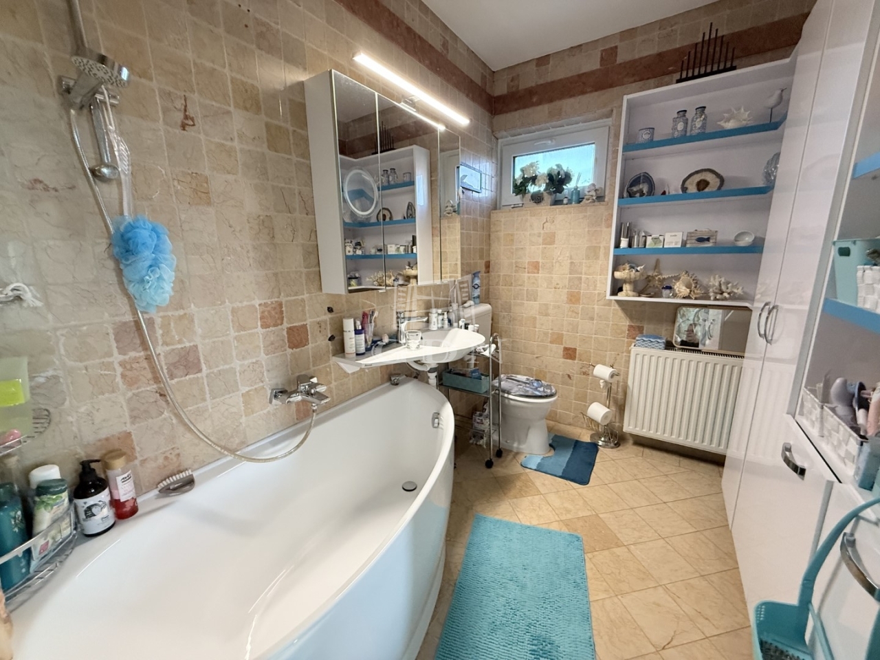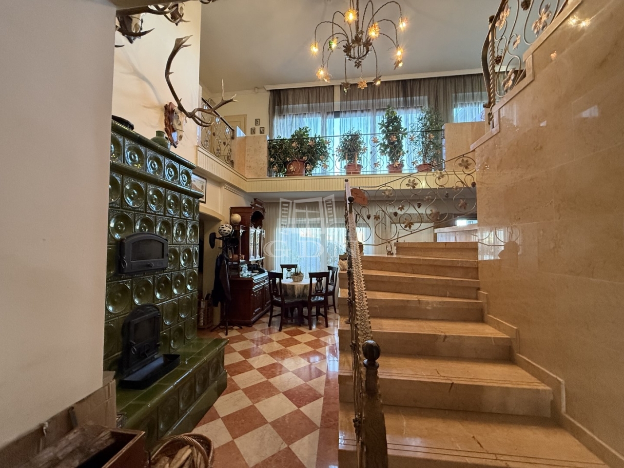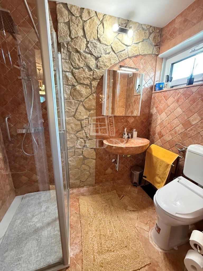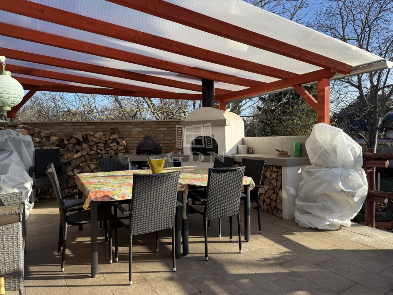 Az 1523 m2-es területen elhelyezkedő ingatlan 1995-ben épült, Porotherm téglából, 8-12cm kőburkolattal, illetve hőszigeteléssel. Fűtése gázkazán, padló és radiátoros hőleadással. Nagy teljesítményű klímarendszerrel. Másodlagos fűtésnek a nappali közepén egy impozáns méretű cserépkályha található. Vastag falaknak köszönhetően a rezsiköltsége alacsony. A burkolatok magas minőségű kő és márványburkolat, mely az egész házat egyedivé teszi.