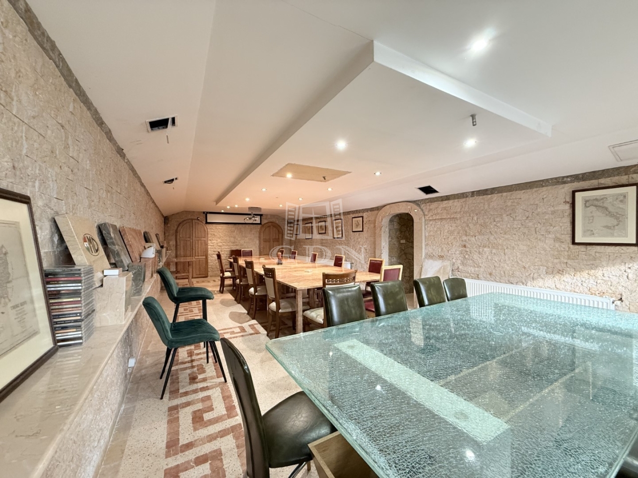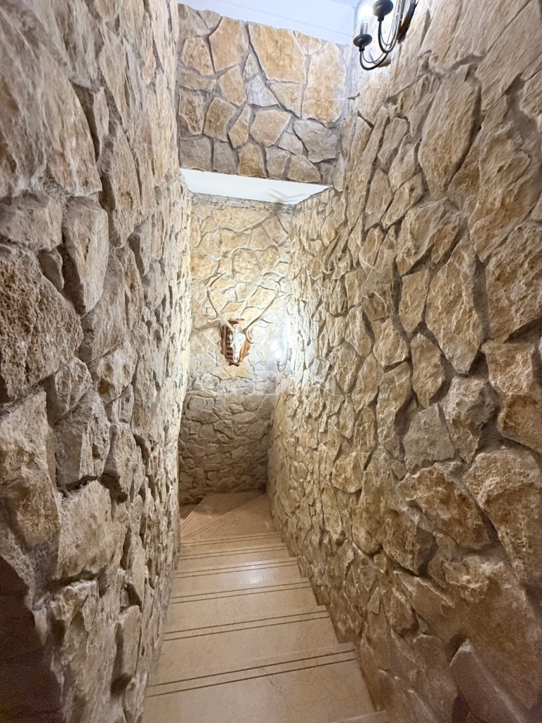 Pinceszint : Az épület alatti pinceszintre került a kazánház, borospince, mosdó, tárolók, fegyverszoba, és a hatalmas méretű tárgyaló/étkező. Ennek a szintnek 2 bejárata van. A lenti részből a télikerten keresztül jutunk a földszintre.