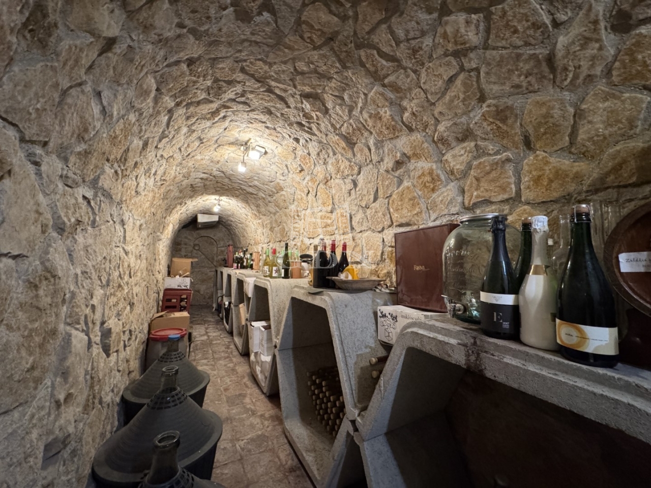 Három szint, 400m2: Pince, földszint és tetőtér-beépítésű „U” alakú lakóépület, Összesen 7 teljes értékű szobával, mindegyikhez fürdőszoba és gardrób tartozik, központi tágas konyha étkezővel, szalon, nappalival, télikert, tárgyaló, boltíves borospincével, teraszokkal.
