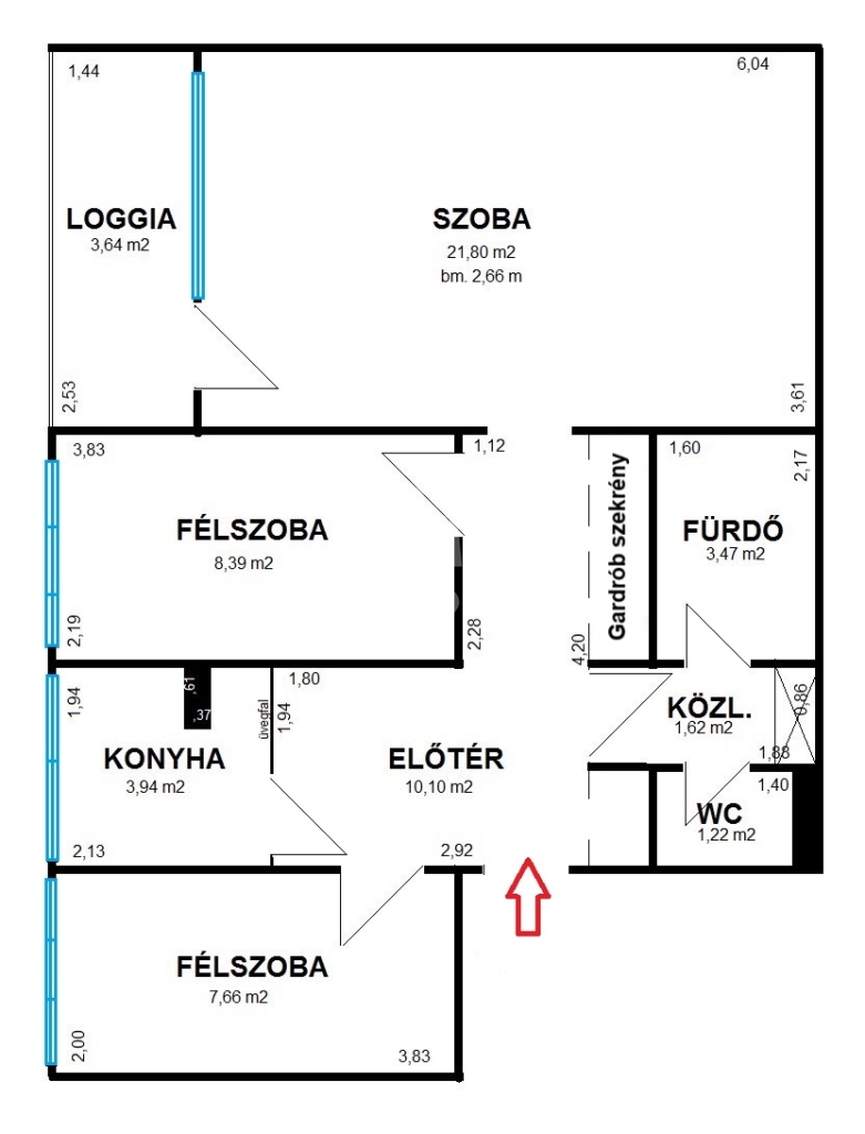 60 m2Alapterület 1 + 2 Szoba
