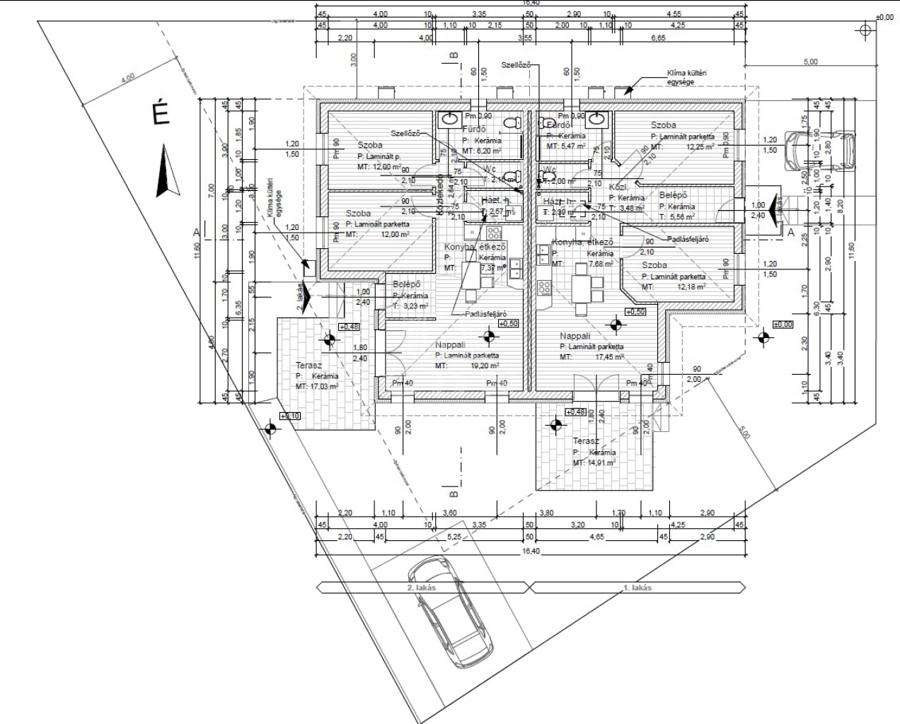 A vízszintes falszigetelés, illetve a padlószigetelés anyaga 1 réteg Icopal E-G 4 F/K bitumenes vastaglemez.