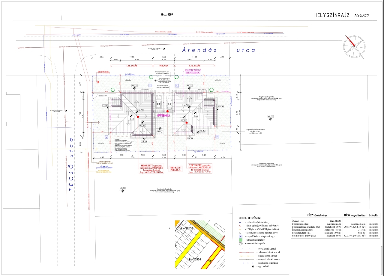 Jászberényben a Szatmáry Lakóparkban a Técső utca és az Árendás utca sarkán 882 m2-es telken eladó egy nettó 114,12 m2-es, 441 m2-es kizárólagos használatú telekrésszel rendelkező kulcsrakész újépítésű Ikerfél.
