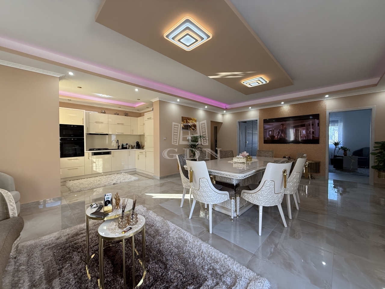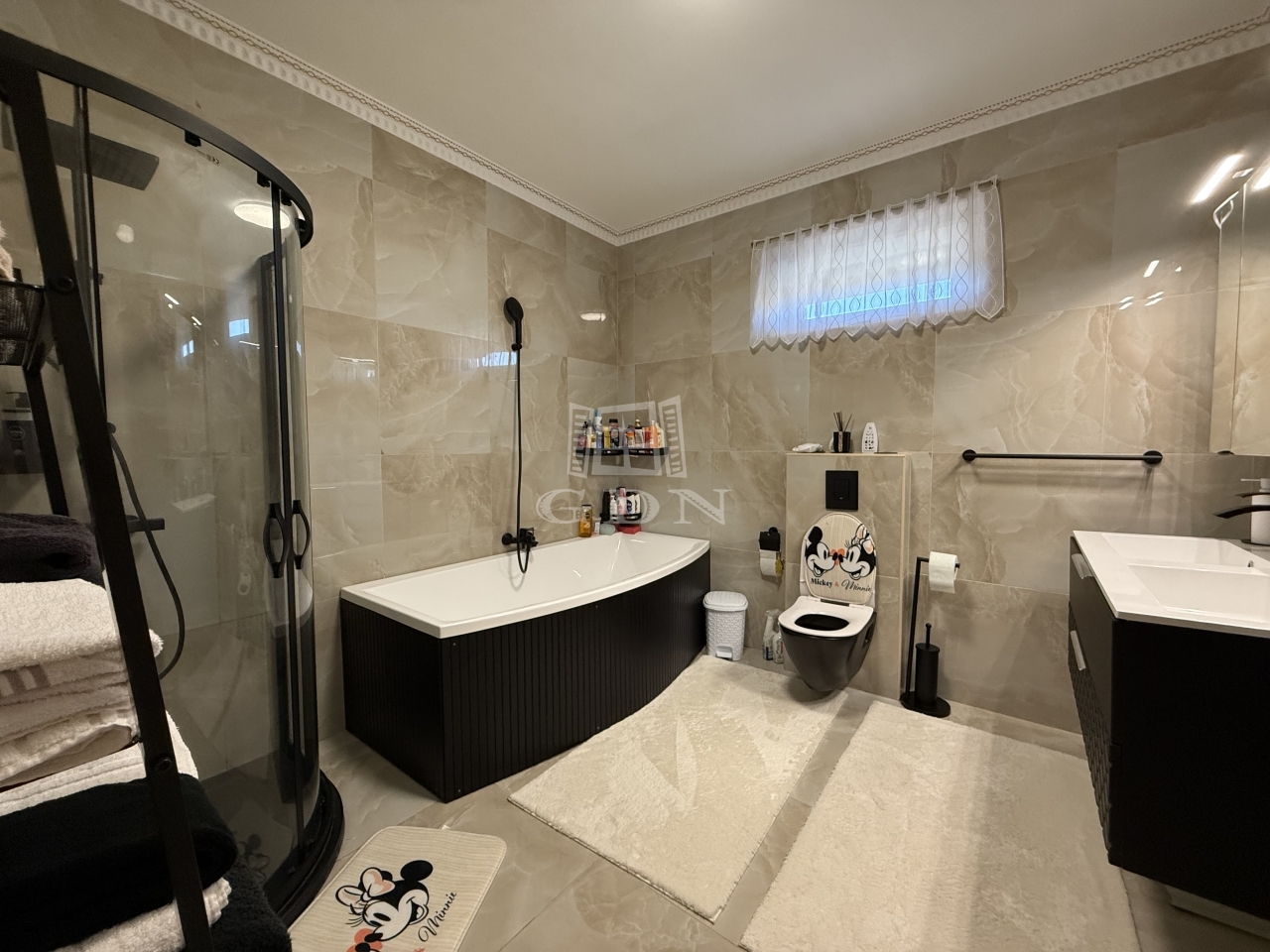 Minőségi burkolatok, beltéri ajtók, szaniterek, elektromos alumínium redőnyök szúnyoghálóval, gépesített konyha (Whirpool 6. érzék) jellemzik az ingatlant.