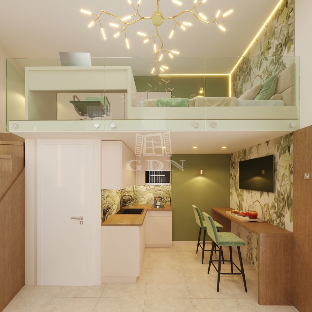 Every detail of the apartment has been carefully thought out: thanks to its practical layout and comfortable gallery, the space feels surprisingly spacious. The gallery is ideal as a sleeping area, leaving the living room completely free for other uses. The modern renovation features high-quality finishes, clean design and space-saving solutions – every centimeter here is designed for comfort.