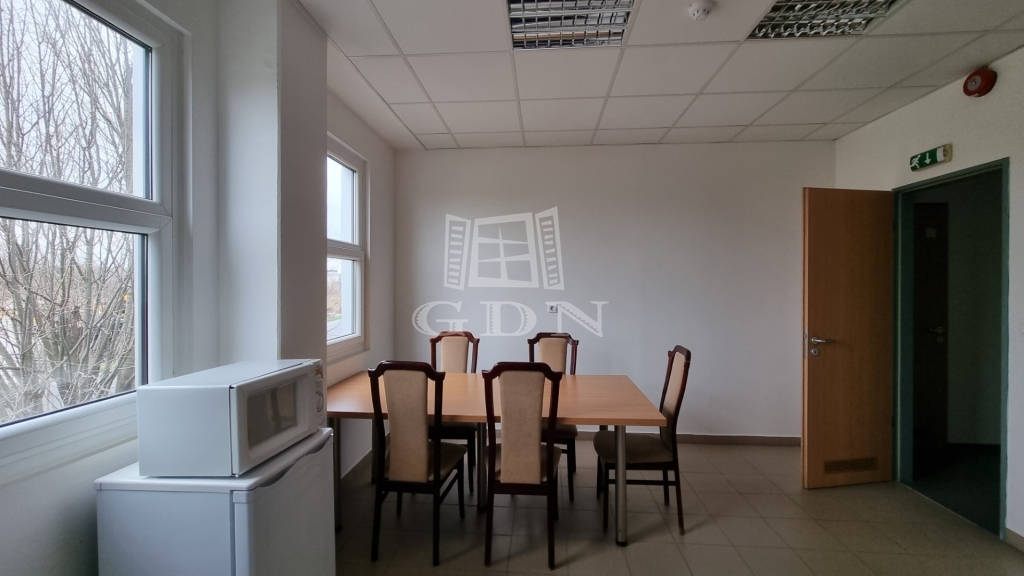 A csarnokhoz bérelhető egy újszerű állapotú, első emelti, klímás, 45 m2-es irodahelyiség közös használatú WC/mosdóval és teakonyhával. Igény esetén tárgyalóhelyiség is bérelhető.