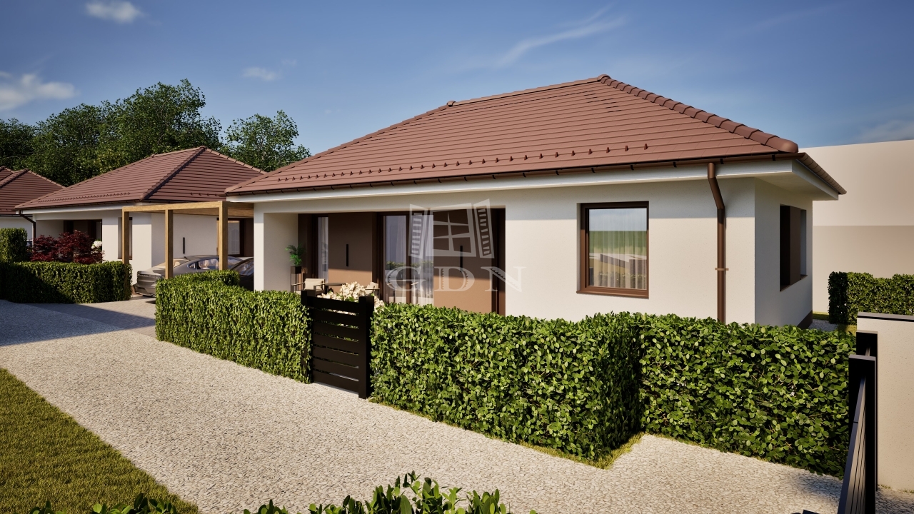 A Wienerberger Porotherm téglából épülő házak magas műszaki tartalommal épülnek. Tetőszerkezete C22 I. osztályú , rovar, gomba és lángmentesítővel kezelt faanyaggal kerül kivitelezésre. Fedése Terran vagy Bramac cseréppel történik, az összes rendszer tartozékkal, előírások szerint helyenként hófogóval. Bádogos szerkezetek, a külső vízelvezetések ereszcsatornái, a lefolyócsövei és az egyéb bádogos szerkezetek 0.6 mm vastag acéllemezből készülnek. Homlokzati falfelületek 15 cm vastag EPS hőszigetelő rendszert, a lábazatok 10 cm vastag XPS lábazati hőszigetelő rendszert kapnak. A padozatokba 10 cm vastag teherbíró EPS hab hőszigetelés kerül. A födém hőszigetelése 25 cm vastag ásványgyapot szigetelőanyaggal történik. Külső nyílászárói műanyag, három rétegű üvegezéssel szerelt, fokozottan hang-és hőszigeteltek. Fűtése, a háztartási helyiségben elhelyezett 10Kw teljesítményű Gree Versati 3 hőszivattyúval történik, padlófűtéses hőleadással szabályozható termosztáttal. A hőszivattyú biztosítja a melegvizet is, egy 200 literes hőtárolós víztartállyal. Nappaliában 3.5 Kw teljesítményű hűtő- fűtő klíma kerül. Az ingatlanban riasztó, kaputelefon előkészítés történik. Beltéri ajtók, hideg-meleg burkolatok, szaniterek, csaptelepek választhatók.. Ha bővebb tájékoztatást szeretne, kérem keressen. Vegye igénybe irodánk szolgáltatásait. Hitelügyintézésben is segítünk.