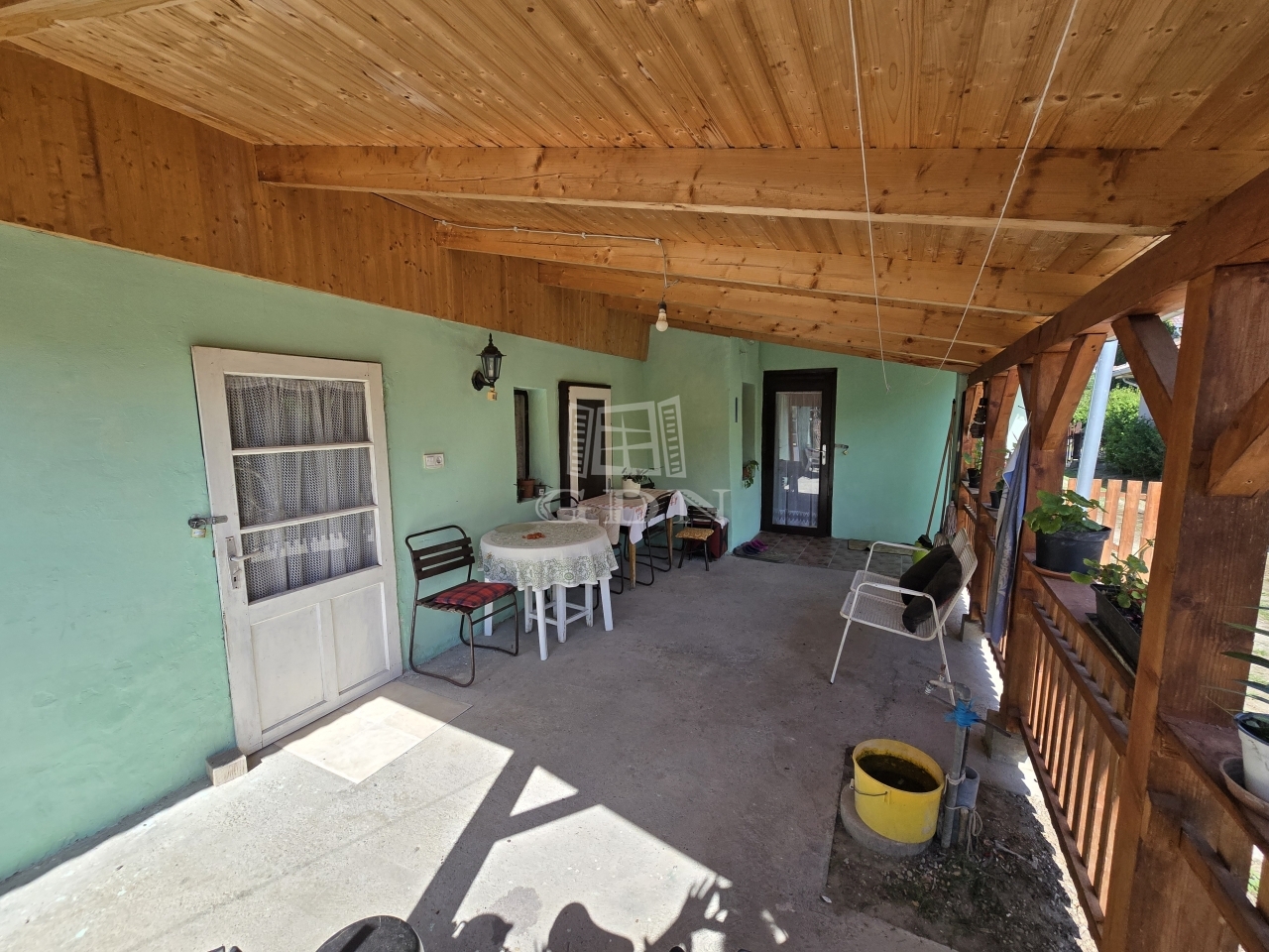 A telek rendezett, gondozott, a házhoz tartozik továbbá egy nyitott, fedett garázs. A hátsó udvarrészen további zöld terület található, valamint a telek végében egy saját, erdősávval határos rész is rendelkezésre áll, amely természetes elkülönülést biztosít a pihenéshez.
