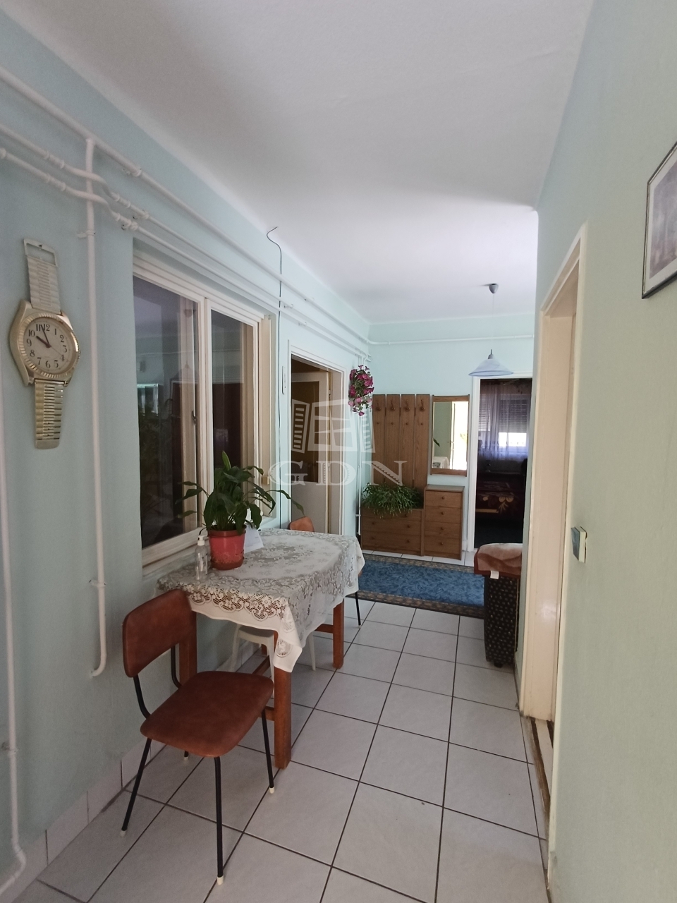 A ház praktikus elrendezésű: hosszú, világos folyosó fogad bennünket, innen nyílik a konyha (amely akár szülői hálószobává is alakítható), valamint egy tárolóhelyiség, amely gardróbbá alakítható. Az otthon része egy tágas, szoba, egybenyitott konyha–étkező tér, külön mosdó, tusolós fürdőszoba, közlekedő, nappali, valamint két utcafronti szoba.
