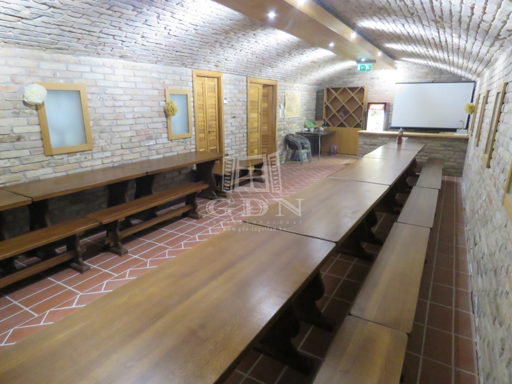 ▪ igényesen kialakított fedett terasz (35m2) nagy borospincével (55m2), mellékhelyiségekkel