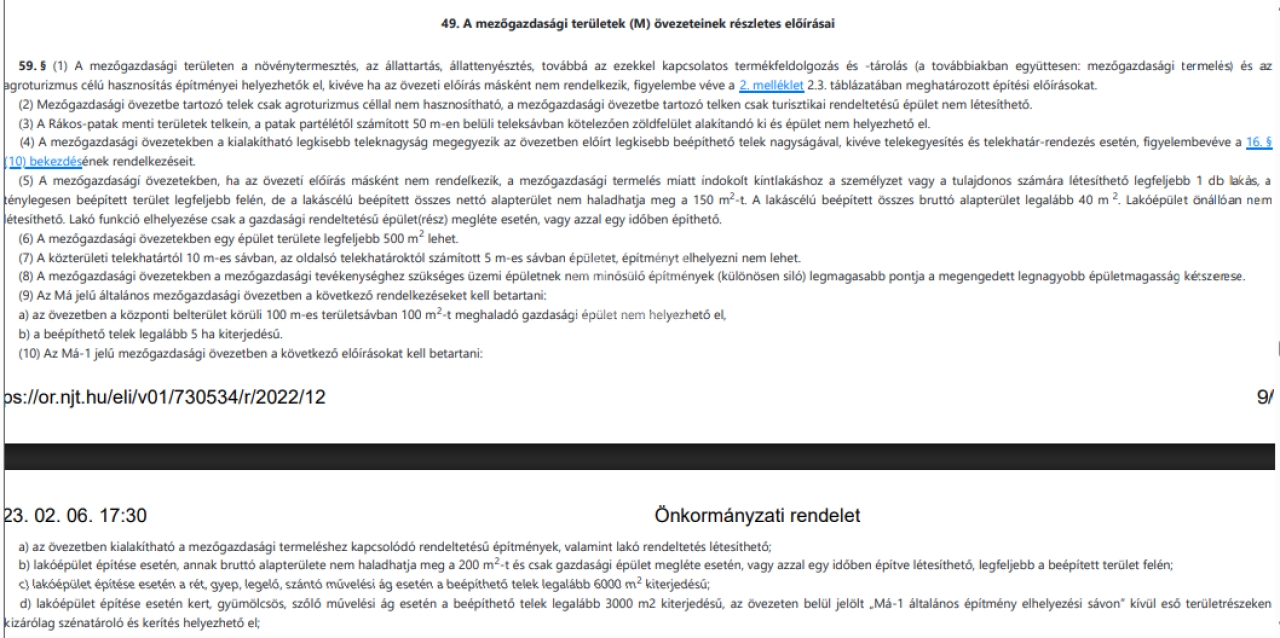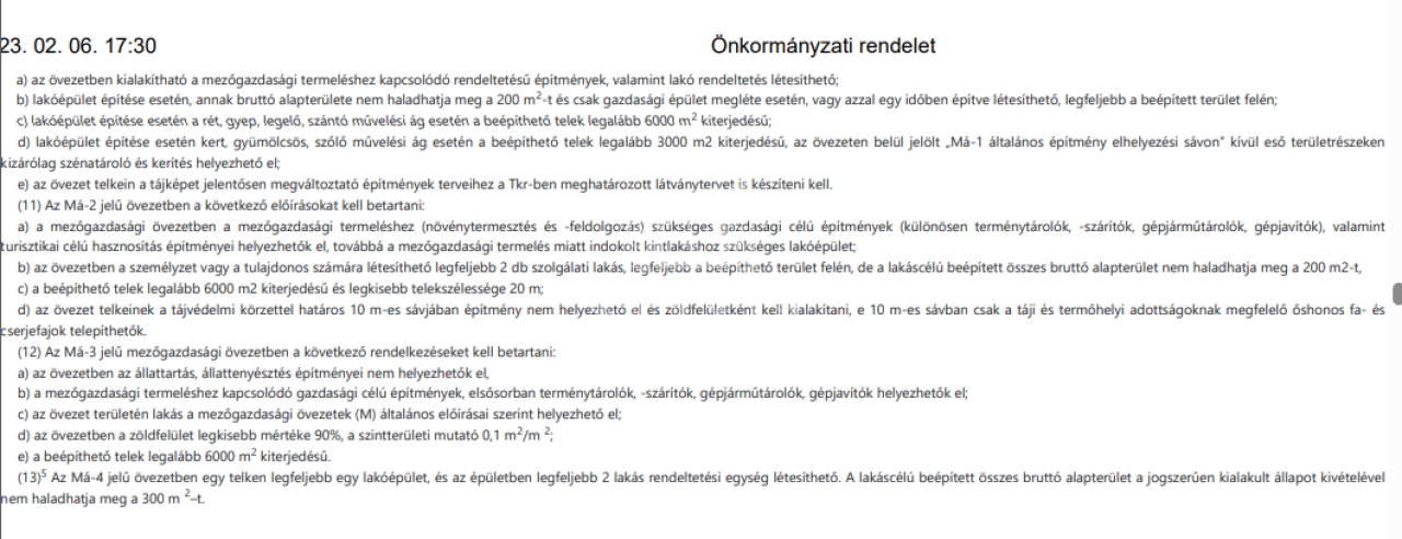 Ezek a területek csak 50.000 nm-től lennének beépíthetőek.1325 nm belőle 6-os, 710 nm pedig 7-es minőségi osztályú.