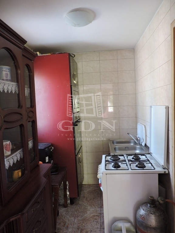 A konyhában, palackos gáztűzhelyen lehet főzni. A víz fúrt kútból jön, hidroforos megoldással.
