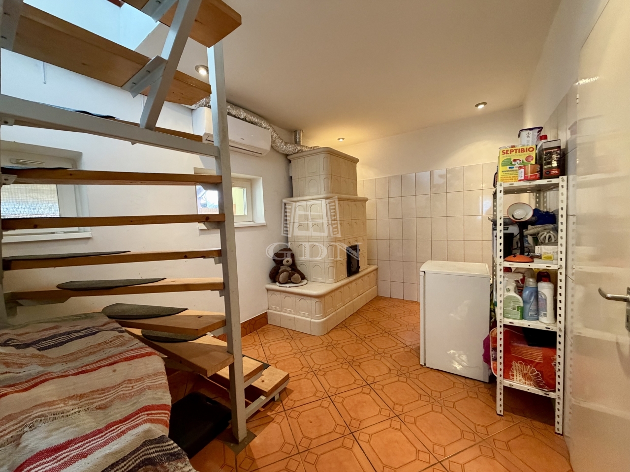 - Fűtés: két darab, kb. 3 éve épített cserépkályha, biztosítja a meleget, melyek közül az egyik elektromos égésvezérléssel ellátott a hatékonyabb energiafelhasználás érdekében. Rendelkezésre áll továbbá egy szabadon álló kandalló is, és a zuhanyzóban elektromos törölköző szárítós fűtőtest.