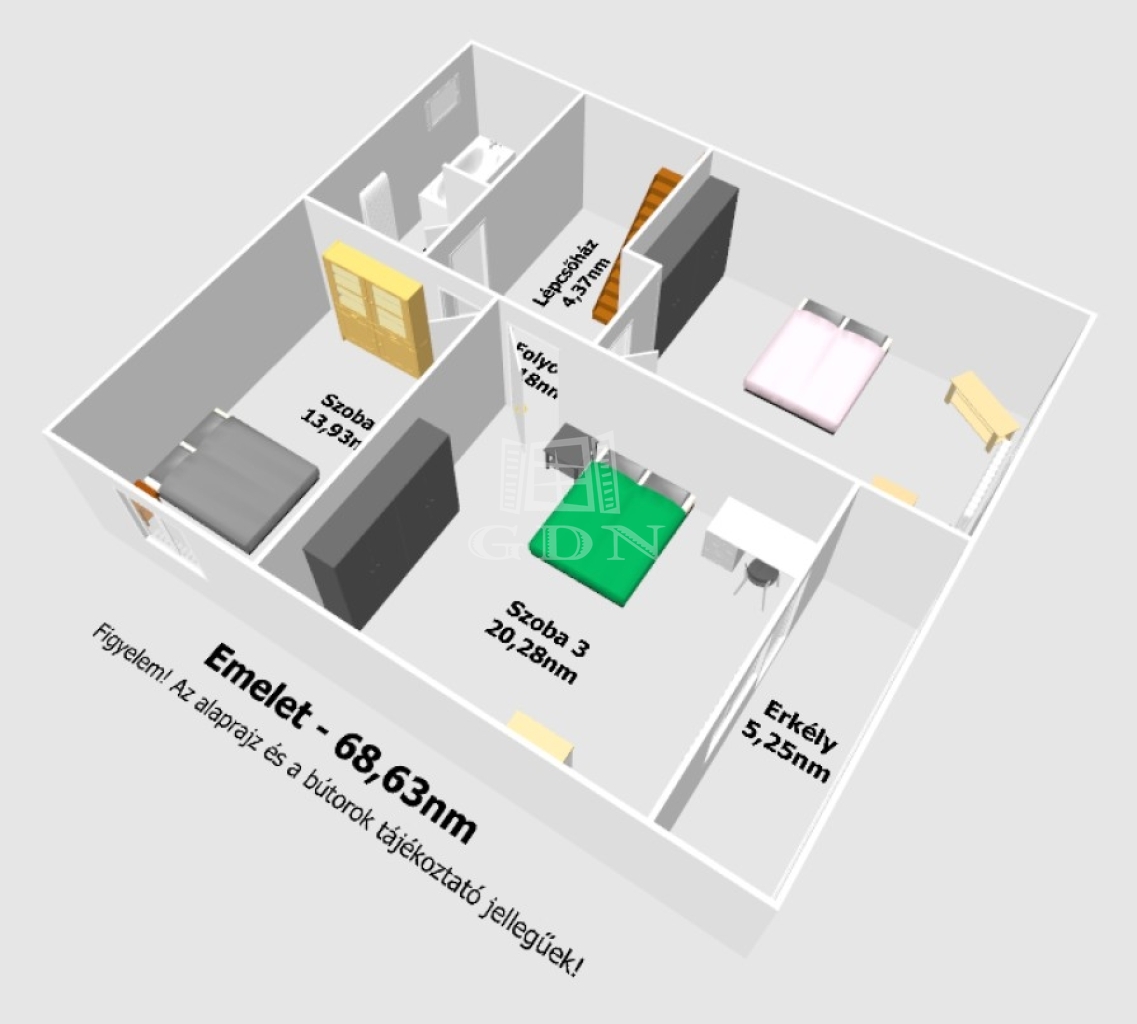 Az épület hasznos alapterülete 68,76+68,63=137,39nm melyben található: