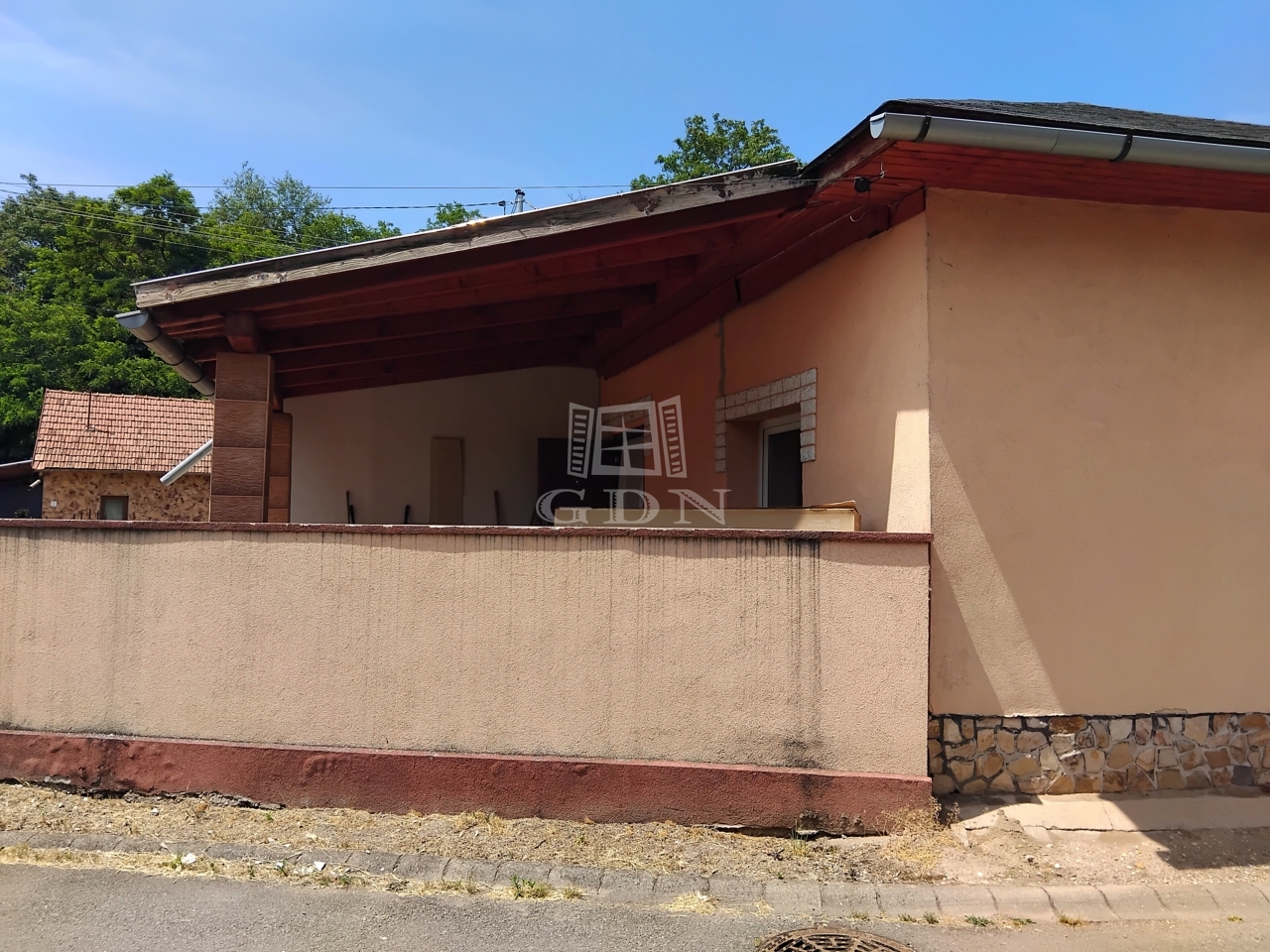 A kertes ház a 70-es években épült beton alappal és vegyes falazattal (vályog és tégla). A tetőszerkezete amerikai stílusú kombinált tető, zsindelyfedéssel ellátva. A fűtést helységenként elektromos fűtő testek biztosítják továbbá a nappaliban a falba épített hagyományos kandalló is hasznosítható. Az épületben villany (1x32A), víz, és csatorna be van kötve.