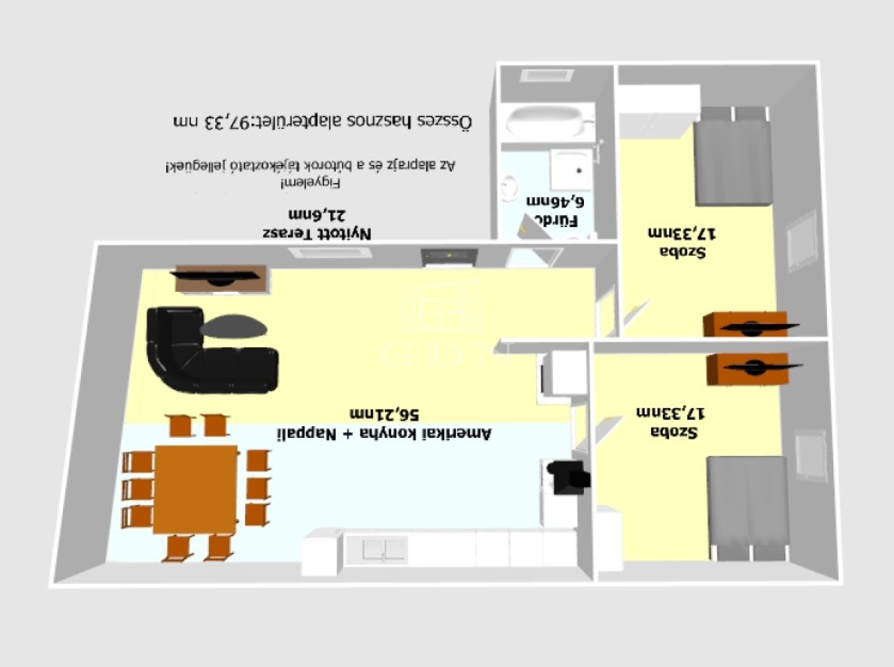 97 m2Alapterület 2 Szoba