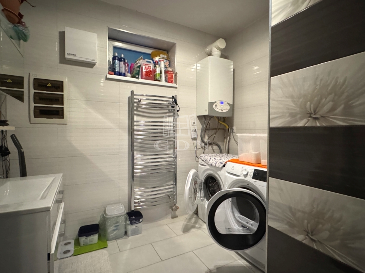 A ház fűtését Ariston kazán biztosítja radiátoros és padlófűtéses hőleadással, továbbá a kellemes komfortérzetről egy hűtő-fűtő klíma is gondoskodik. Kémény kiépítésre került, így lehetőség van kandalló, kályha telepítésre is.