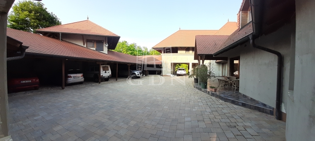 Az épület belső udvarában fedett parkolók állnak a gépkocsik rendelkezésére.
