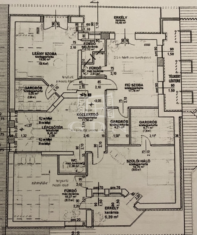 Egy hálószobához francia erkély, egyhez egy saját 10 nm-es erkély a szülői hálóhoz pedig egy 6,4nm-es erkély tartozik, mely közös a fürdőszobáéval.