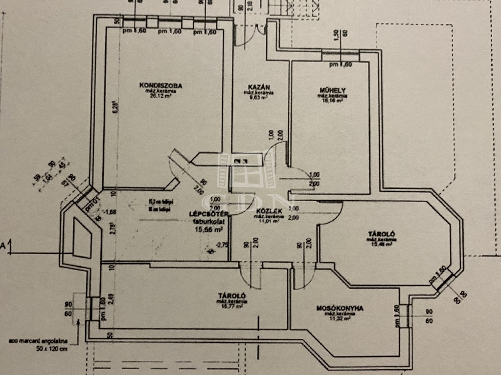 A szuterén szinten 6 helyiséget találunk, melyek jelenleg kondi szoba, műhely, kazánház, mosókonyha, 2 tároló és egy mosdó, szinte mindegyik helyiségen ablakok találhatóak.
