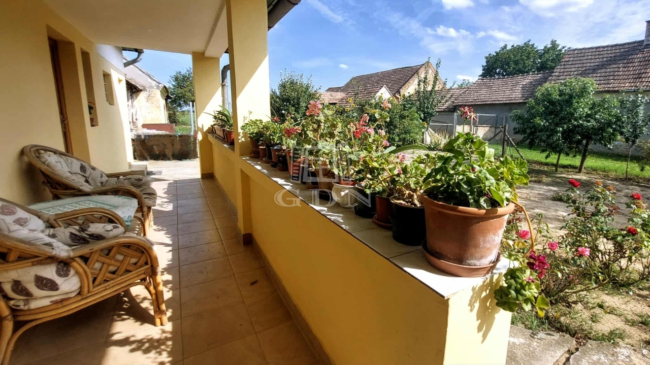 A faluban, nyugodt utcában található ez a háromszobás, 80 m2-es, közepes állapotú, teljesen lakható, de igény szerint felújítandó ház. Az utcában sok német illetve angol családnak van gyönyörűen felújított háza. Az ingatlanhoz több gazdasági épület és istálló is tartozik, a nagy telek (6962 m2) pedig számtalan lehetőséget kínál: alkalmas lehet gazdálkodásra, de akár ló- vagy más állattartásra is.