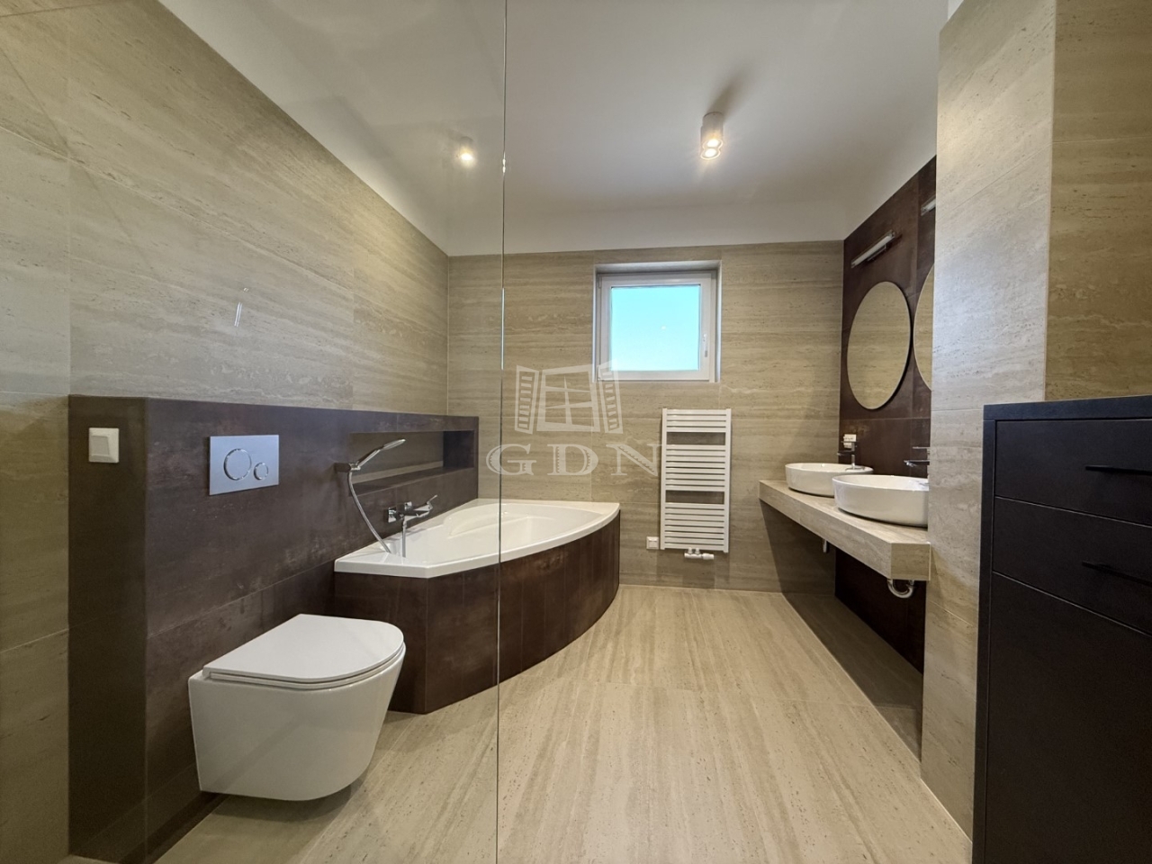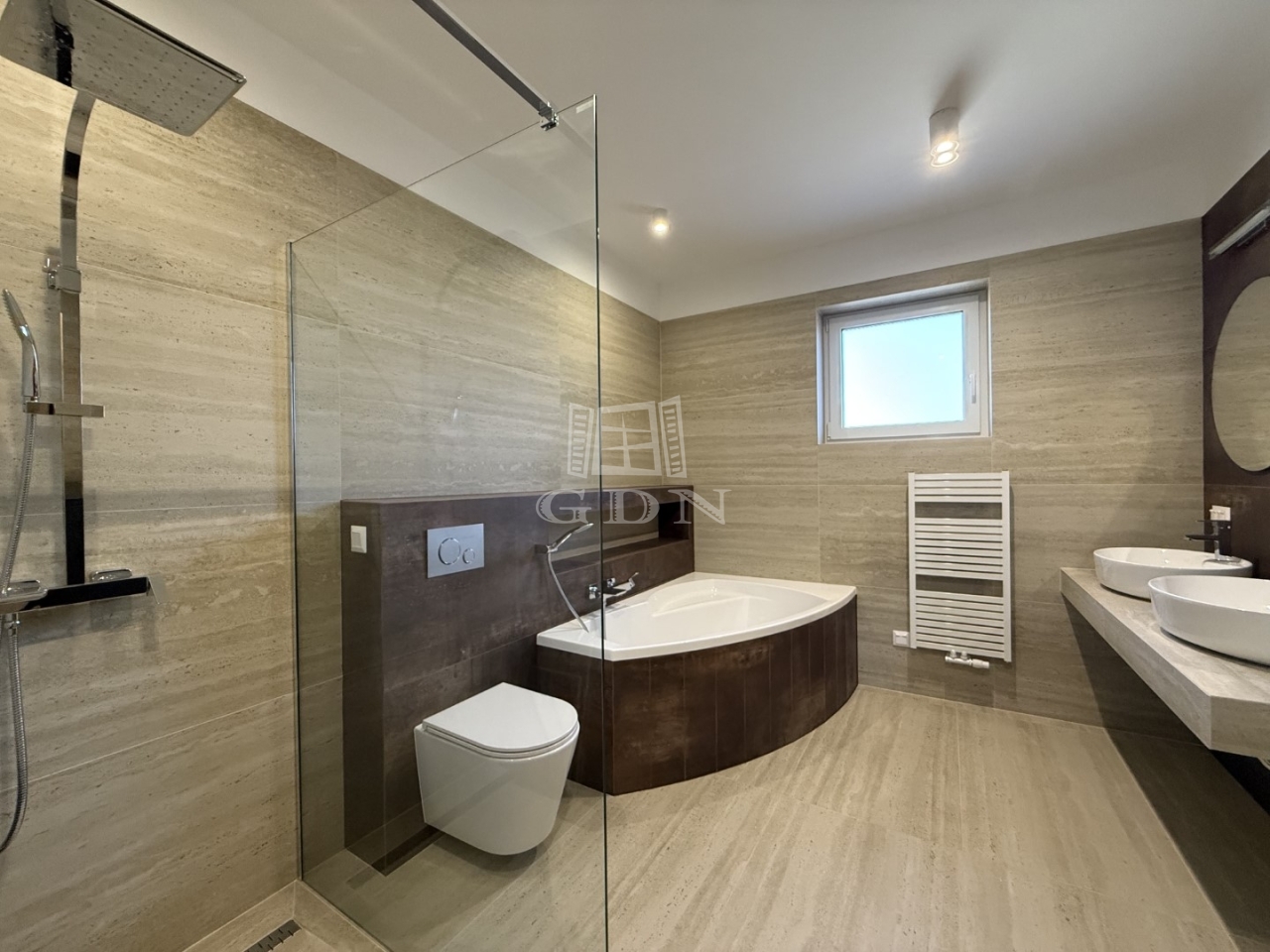 A korszerű, hőszivattyús fűtési-hűtési rendszer minden helyiségben fan-coil egységekkel, szobánként szabályozható hőmérséklettel biztosítja az energiatakarékos és kényelmes klímát. A nyílászárók alumínium motoros redőnyökkel, szúnyoghálókkal, emelő-toló teraszajtóval felszereltek, az épület biztonságát riasztó és kamera rendszer garantálja.