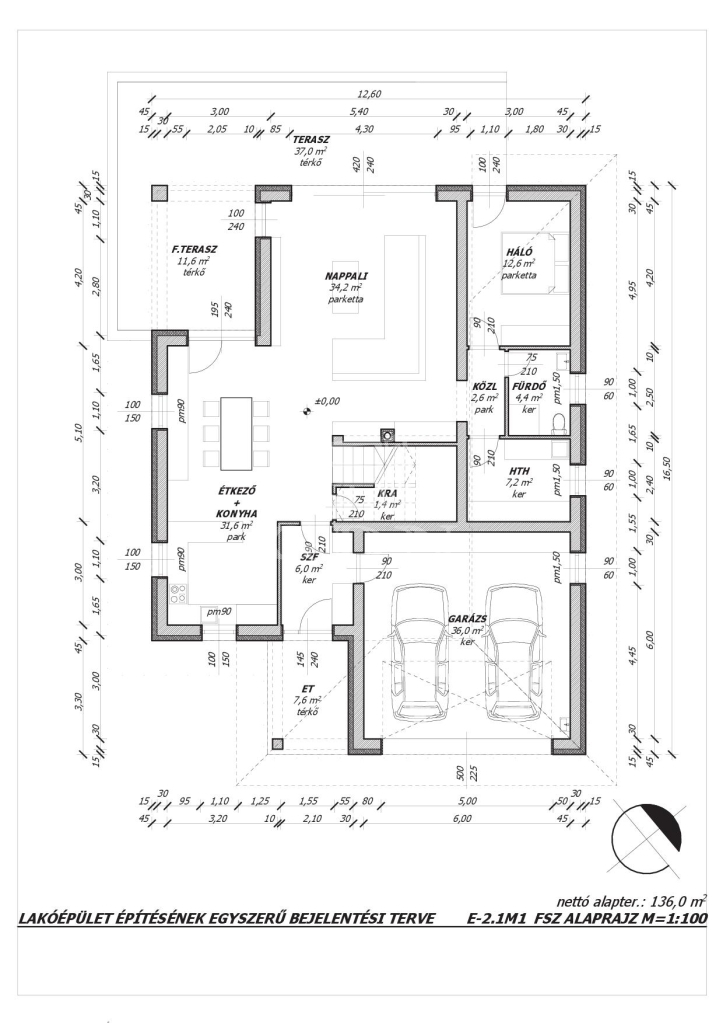 A ház 223m2 hasznos alapterületű, elosztását tekintve: