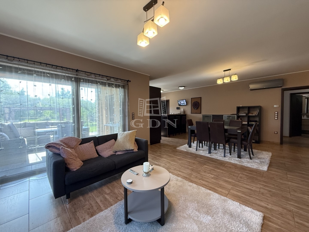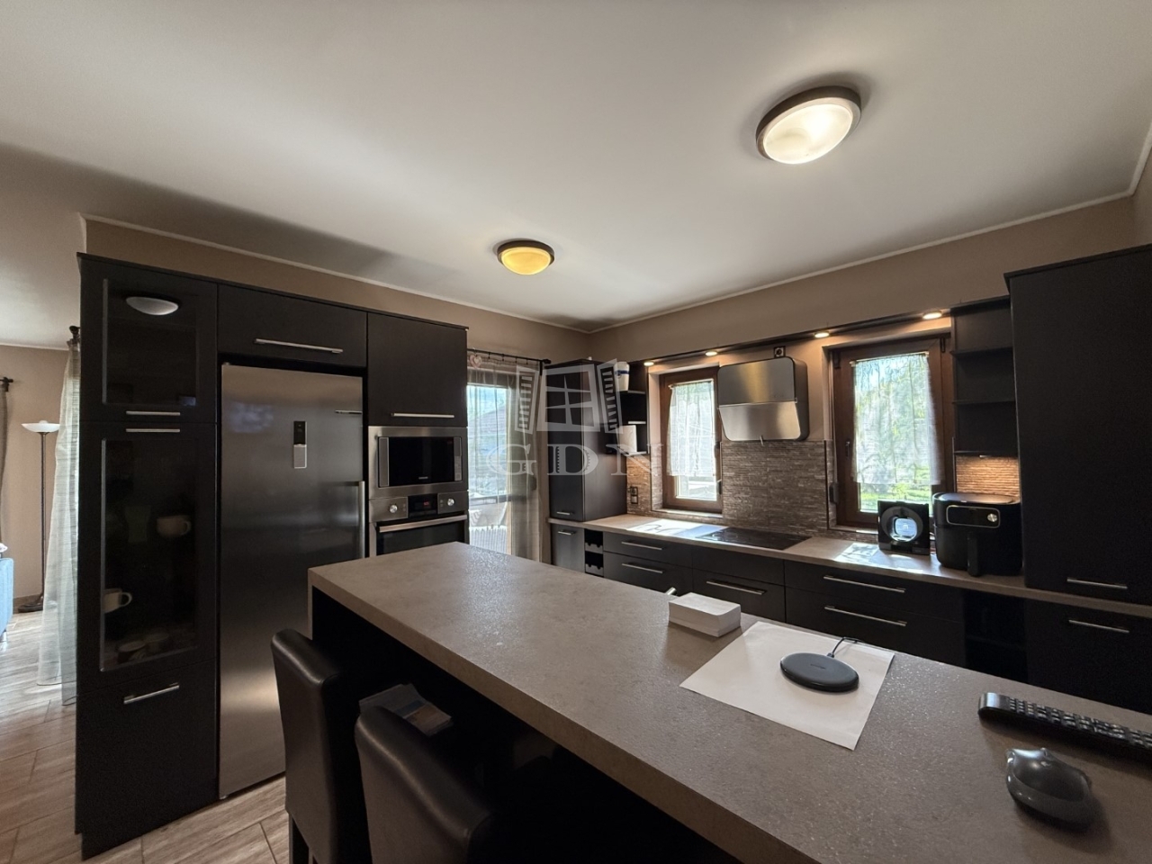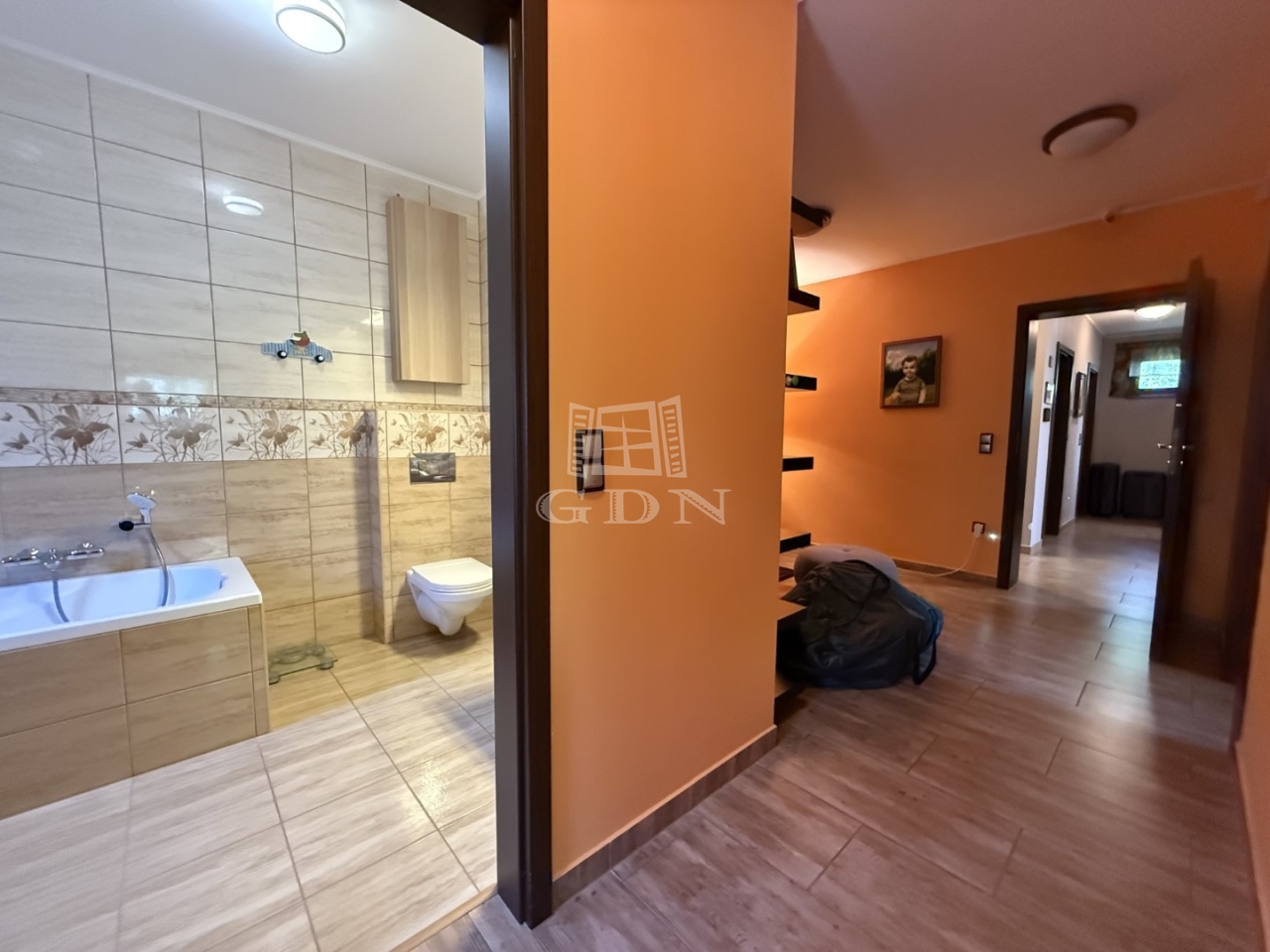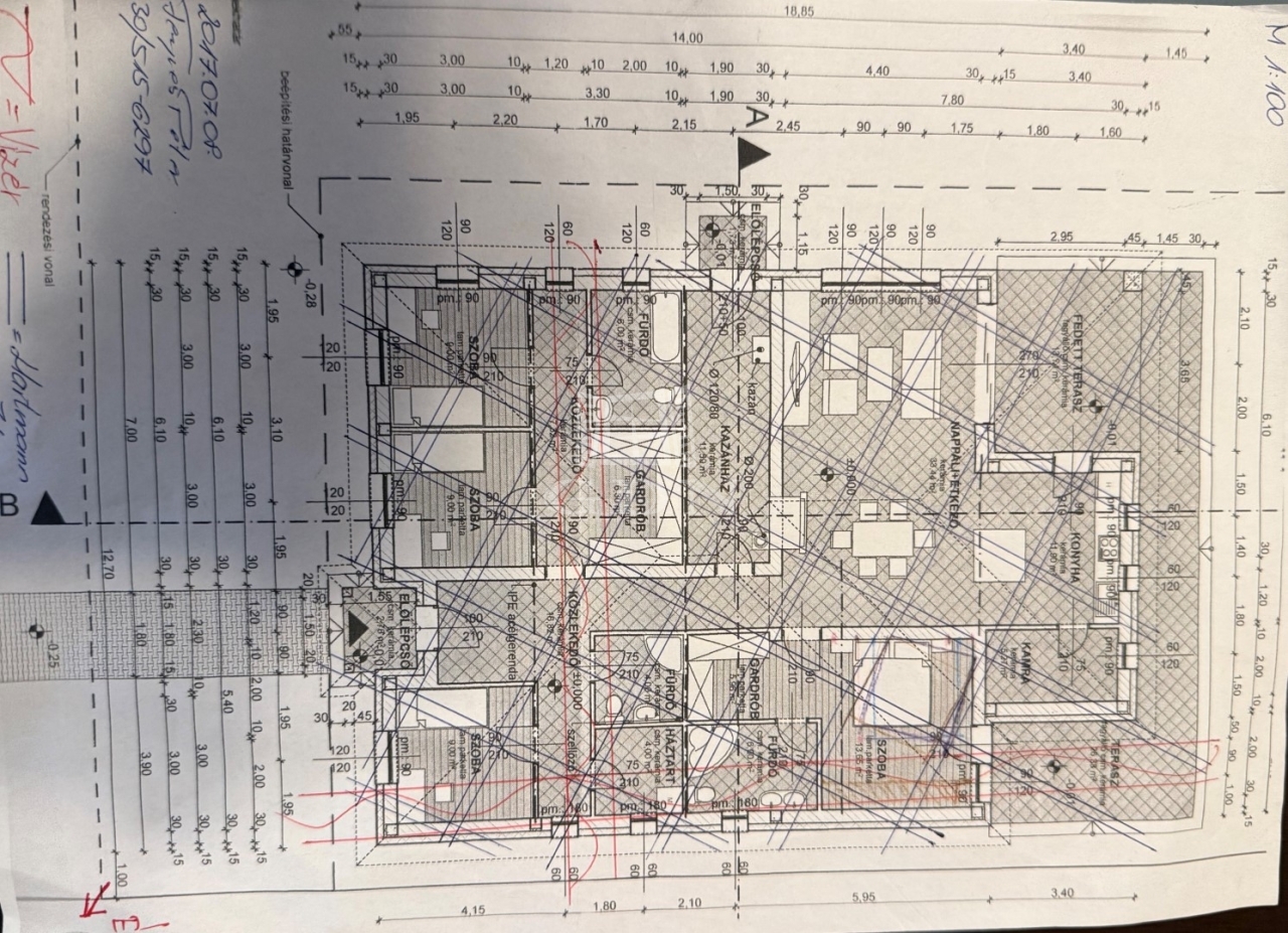 - előszoba, tágas nappali konyha-étkező kamra, 4 szoba, 3 fürdőszoba +wc-vel bidével, nagy(39m2) részben fedett terasz, és 5,5m2 első terasz, mosókonyha, gépészei helyiség