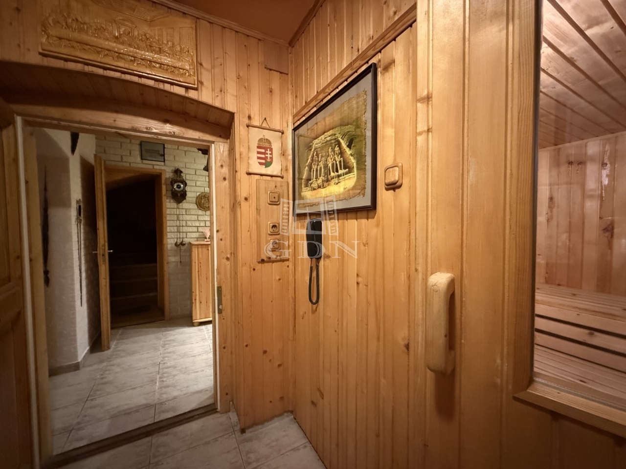 A földszinti 1 számú lakás 160m2 egy tágas, világos (45m2) nappali, étkezős konyha, 1 hálószoba, fürdőszoba, háztartási helyiség, valamint egy 36 négyzetméteres garázs található, ahonnan közvetlen bejárás nyílik a lakótérbe. A nappaliból közvetlen kijárat vezet a 16 m2-es teraszra, a szuterén részben kapott helyet egy pihenőszoba, ami jelenleg a 6 személyes szaunának ad helyet, valamint egy fürdő, wc, , pince a hozzá tartozó „ borozó”-val, valamint a garázs.