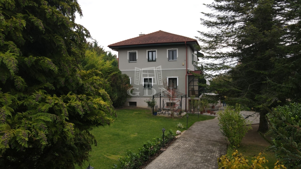 A gyönyörűen parkosított kertbe egy kovácsoltvas kapun keresztül jutunk, ahol a garázson kívül több gépjármű parkolása biztosított, térkövezett beállókkal. A kert öntözőrendszerrel ellátott. Az ingatlan riasztó és kamera rendszerrel felszerelt.