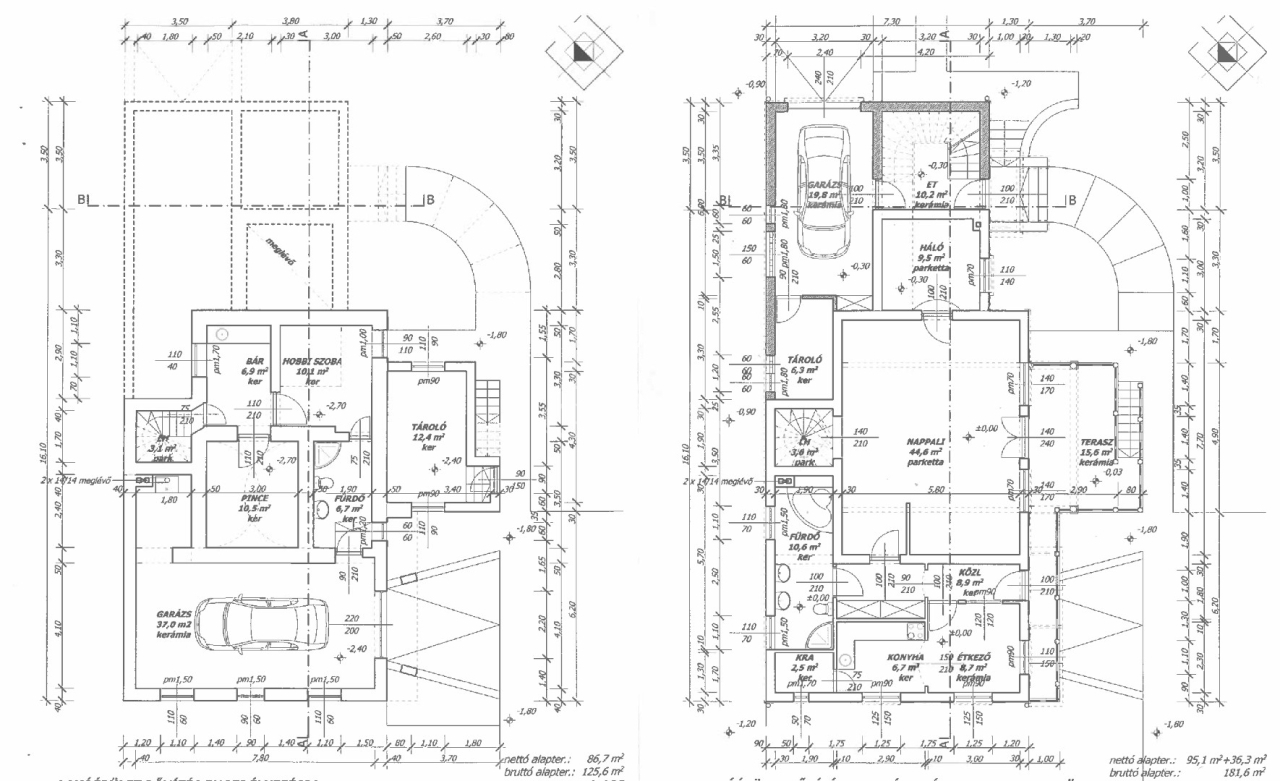 A ház összesen 338m2 hasznos alapterületű, elosztását tekintve: