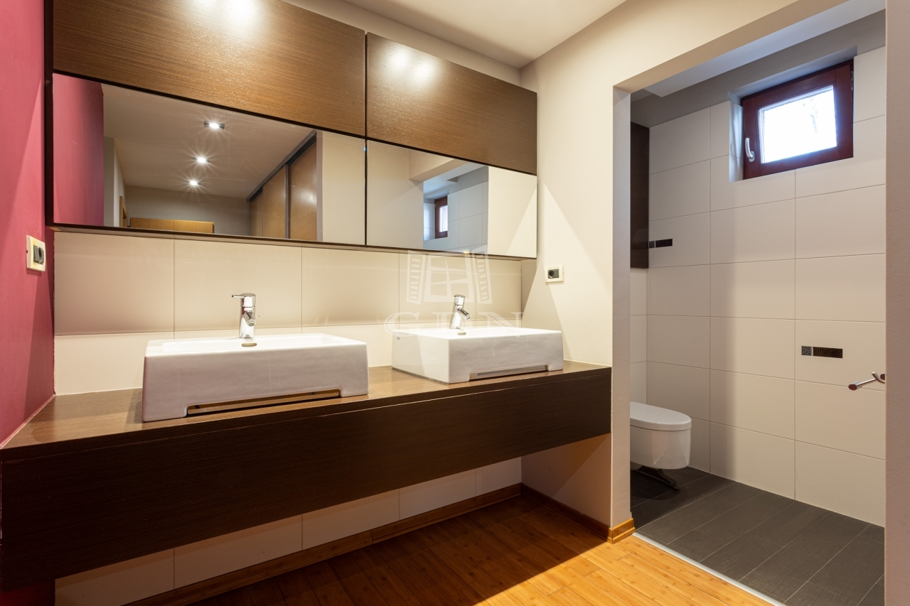 • Földszinten: Nappali + konyha + étkező (60 m²), 1 hálószoba gardróbbal, fürdőszoba wc-vel ( kád és zuhany is), vendég wc