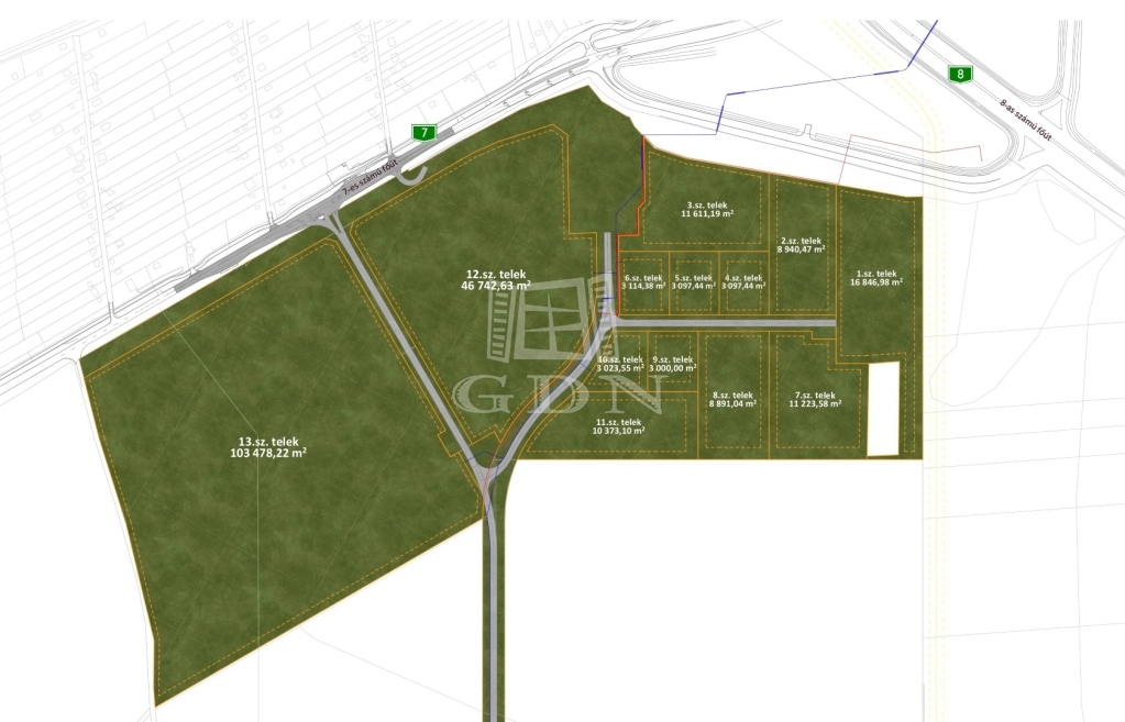 Industrial / logistic development plots for sale in various sizes located in the southwest part of Szekesfehervar at the intersection of main road No. 8. and 7 with direct connection (4km) to M7 highway.