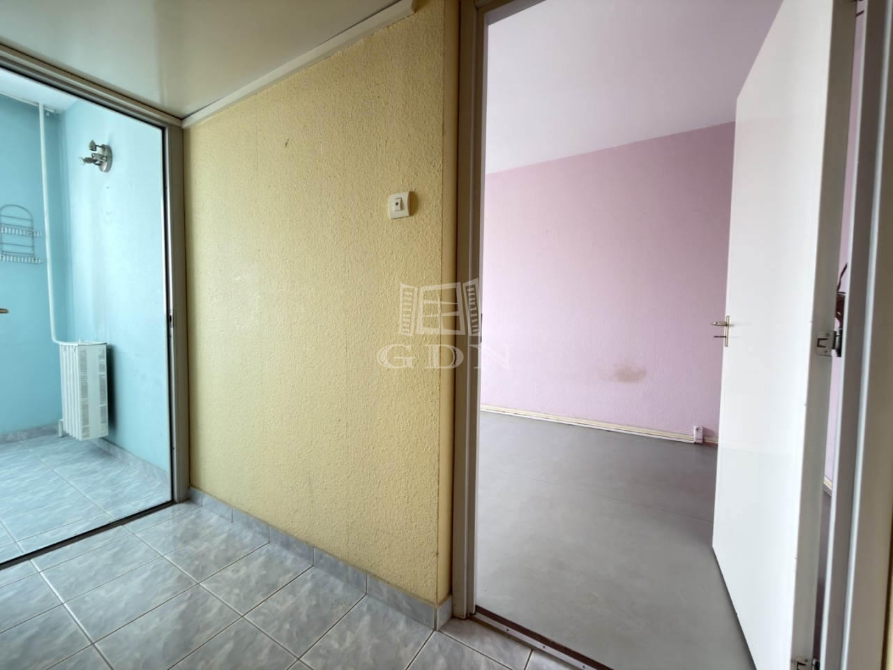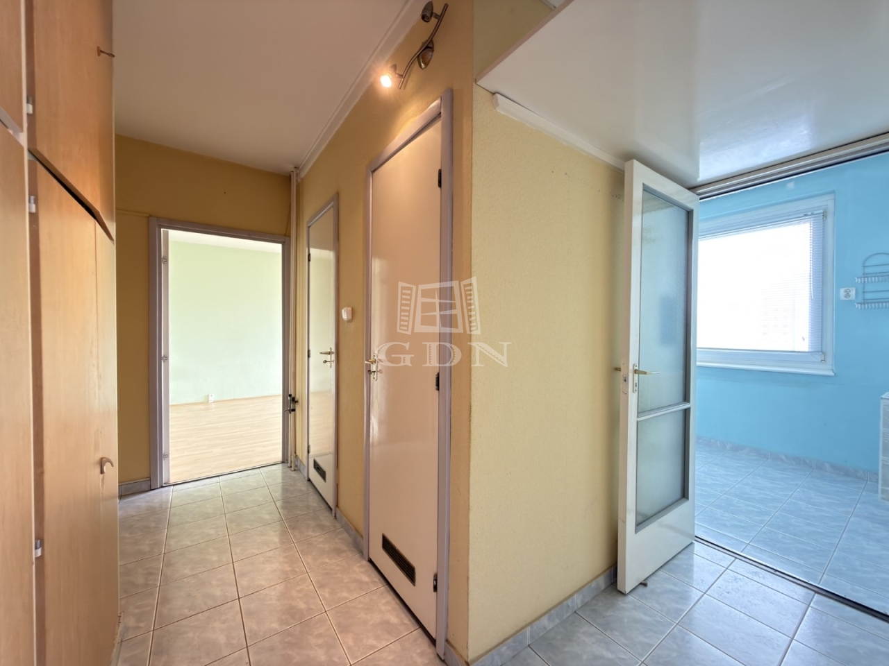 Az erkélyes szobában laminált padló, a másik szobában PVC, a többi helységben járólap a burkolat.