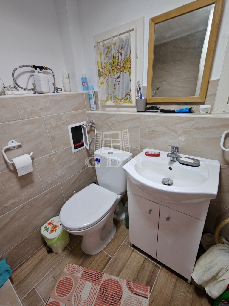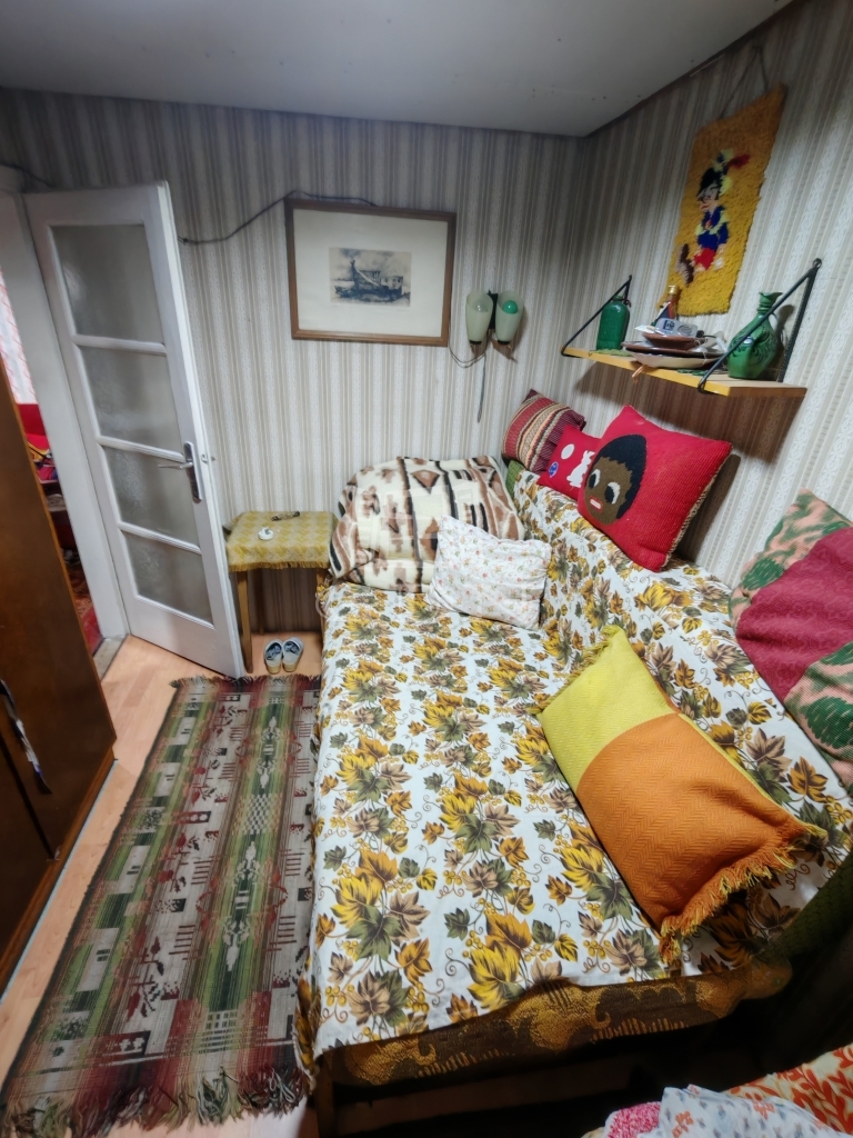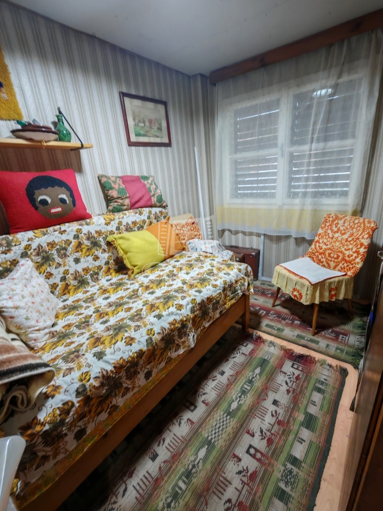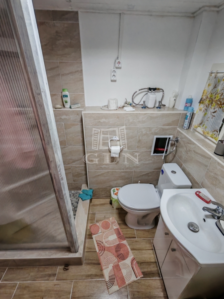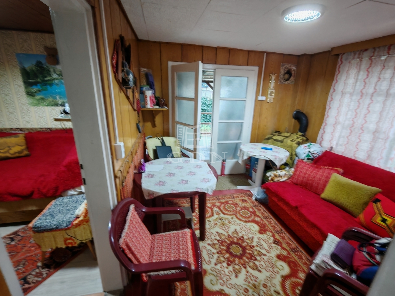 A kisházban két pici szoba egy nappali és egy zuhanyzós fürdőszoba+wc található. A konyha jelenleg a verandáról közelíthető meg,de ez könnyen beépíthető. Jelenleg a veranda még 15 nm.