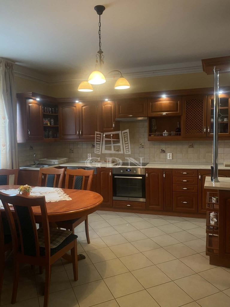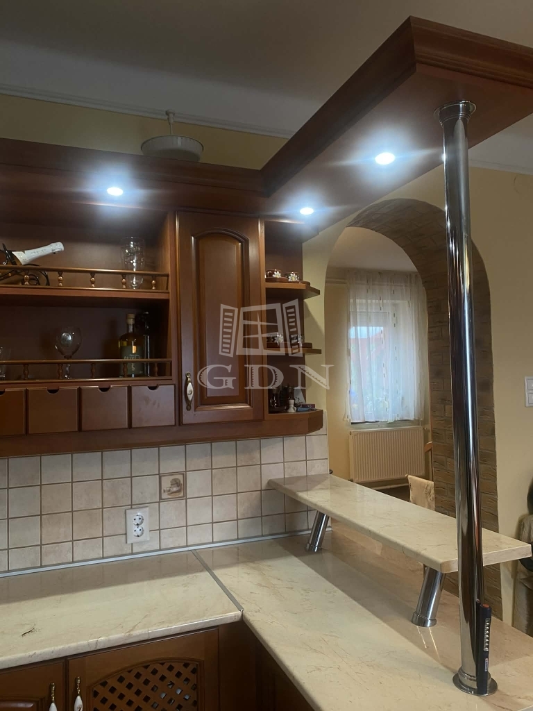 A ház egyik különleges értéke a gyönyörű, egyedi, tömörfából készült konyhabútor, amely elegáns, időtálló megjelenést biztosít.